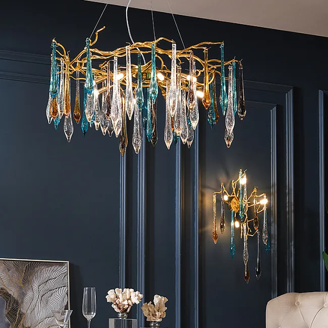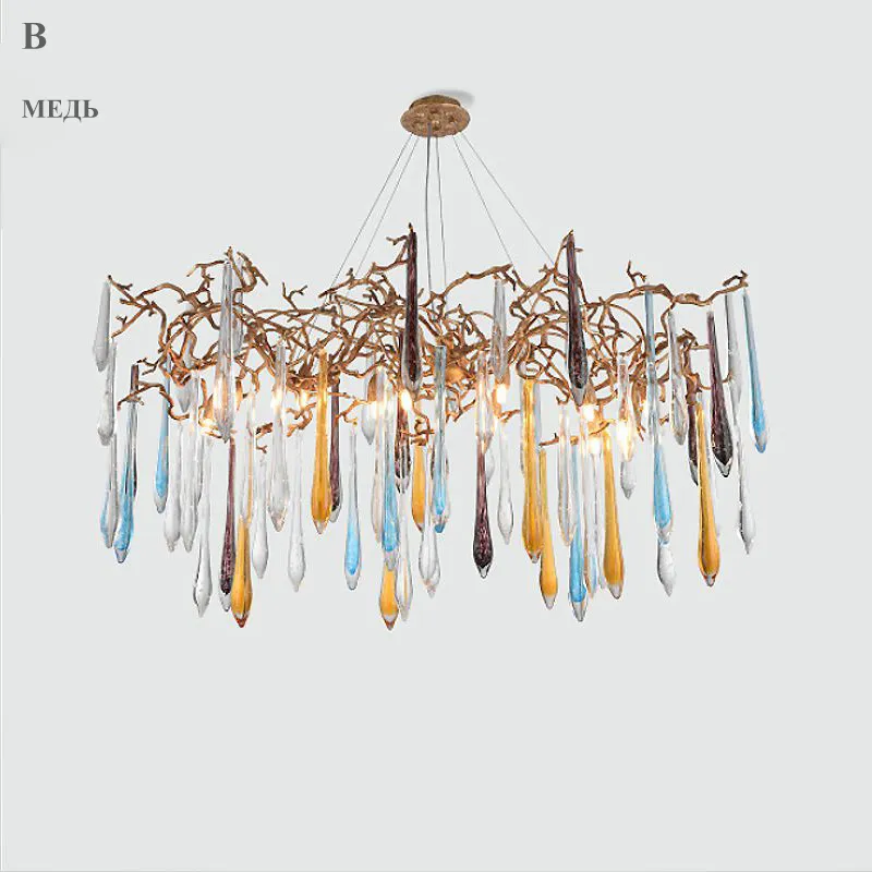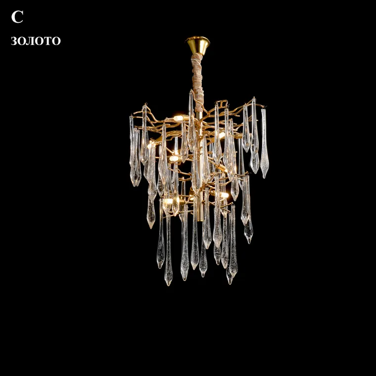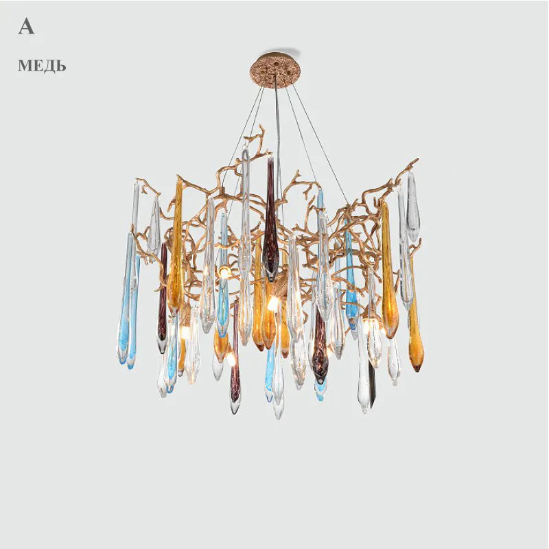Премиальная подвесная люстра SPRUCE с прозрачными или цветными удлиненными подвесками в виде массивных капель создаст атмосферу восточной сказки. Отражаясь и преломляясь в стеклянных элементах свет получается мягким и рассеянным. Освещаемые объекты станут центром комнаты и будут притягивать всех домочадцев собраться вместе. Роскошное украшение комнаты в виде люстры SPRUCEсделает ваш интерьер ярким и изысканным.