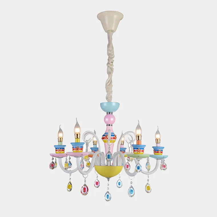 Разноцветная люстра TEATIME 6 для детской с полосатыми плафонами и подвесками в виде кристаллов