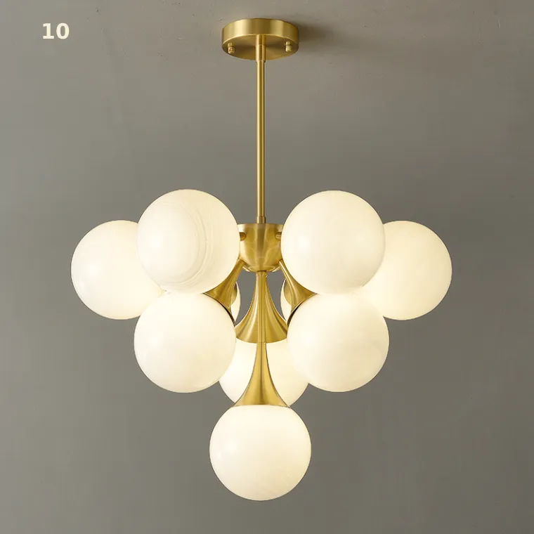 Люстры отличные. Чтобы всё дома было в одном стиле, я заказала две: в спальню с пятью лампами и в гостиную с десятью. И там, и там смотрится и освещает всё отлично. Плафоны стеклянные, белые, но не просто однотонные, а как будто с разводами, напоминает натуральный жемчуг, красиво. Каркас из латуни, вместе всё гармонирует очень.