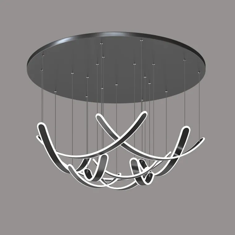 Готовая комбинация подвесных светодиодных светильников c вытянутыми изогнутыми плафонами со скругленными краями