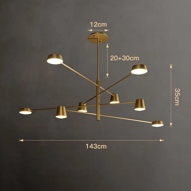 Расположенные на асимметричных поворотных штангах плафоны двух типов создают оригинальную композицию, которая привлекает взгляды и непременно добавит элегантности вашему интерьеру. Вы можете выбрать люстру в черном цвете, чтобы подчеркнуть ее современный облик или в цвете латуни, чтобы придать комнате шикарный и роскошный вид.