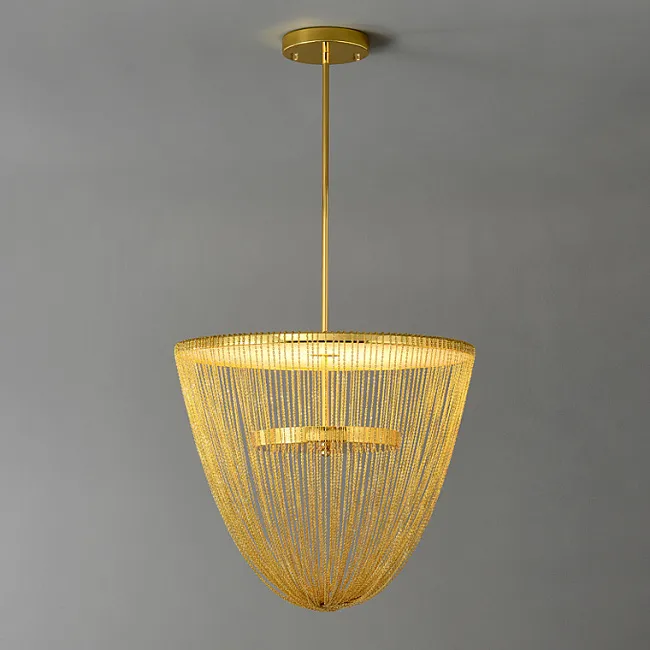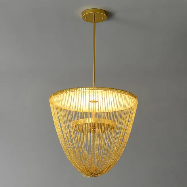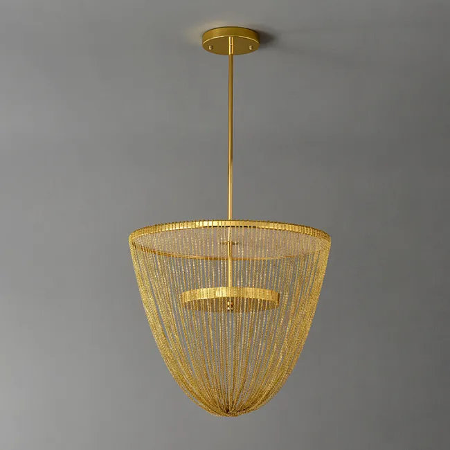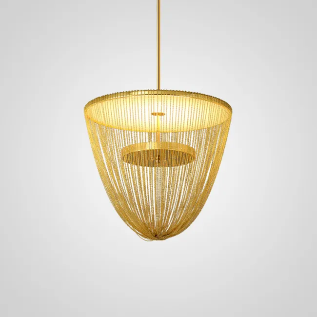Серия подвесных люстр в виде четырехлистного клевера и сердца с абажуром из металлической цепочки с бусинами