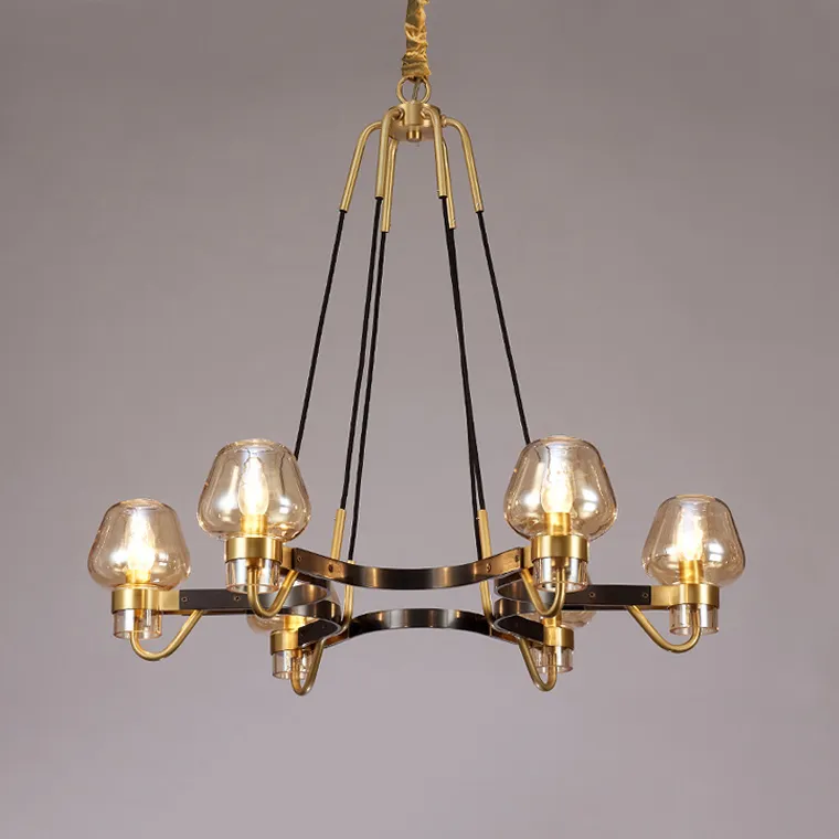 Люстра TWINKLE золотым каркасом и со стеклянными плафонами в стиле постмодерн.