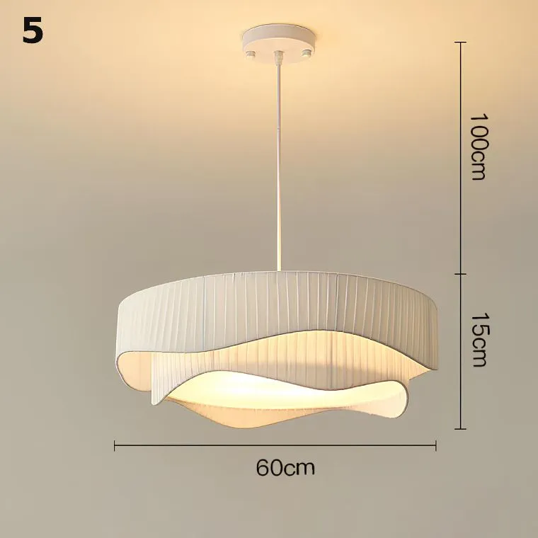 Подвесная люстра с двойным рельефным абажуром волнообразной формы из текстиля. Представьте себе мягкое и волшебное освещение, которое окутывает вашу спальню, гостиную или кухню. В самом центре этого впечатляющего пространства вы встретите подвесную люстру с двойным рельефным абажуром, создающим волнообразную форму из нежного текстиля.