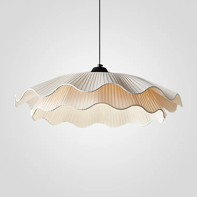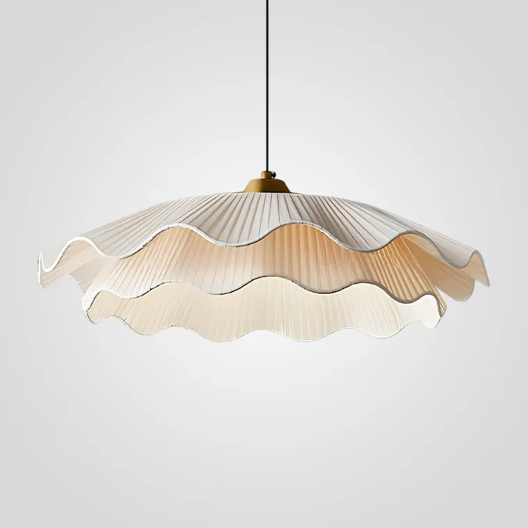 Подвесная светодиодная дизайнерская люстра с двойным рельефным абажуром волнообразной формы из текстиля ручной работы