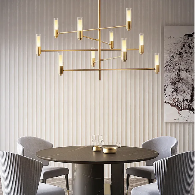 В самом сердце этой люстры – веретенообразная ось из темного дерева. Ее глубокий, насыщенный цвет добавляет нотку драматизма и контраста, подчеркивая воздушность и легкость текстильного абажура.