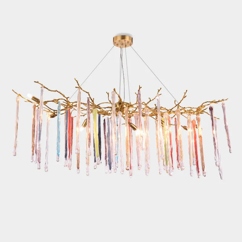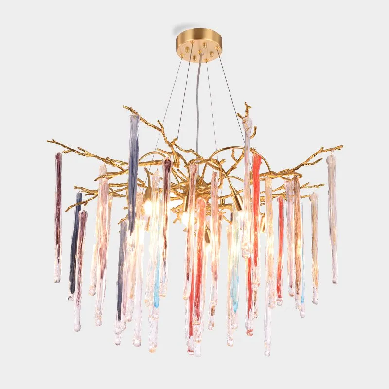 Премиальная подвесная люстра VENETA с цветными удлинненными подвесками из стекла с каркасом ручной работы
