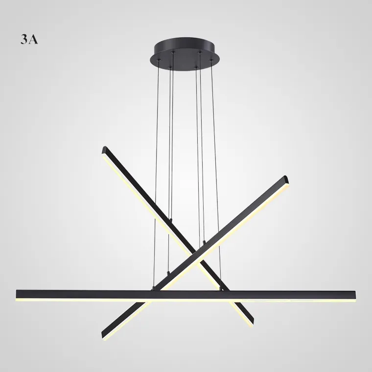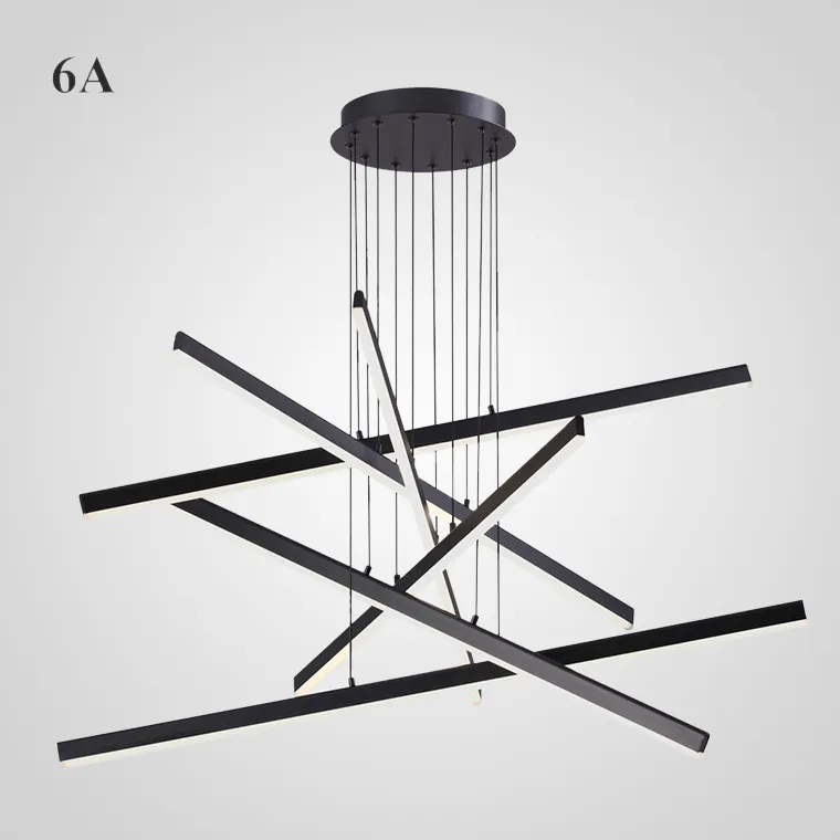 Серия подвесных светильников в виде комбинации черных стержней со светодиодной подсветкой