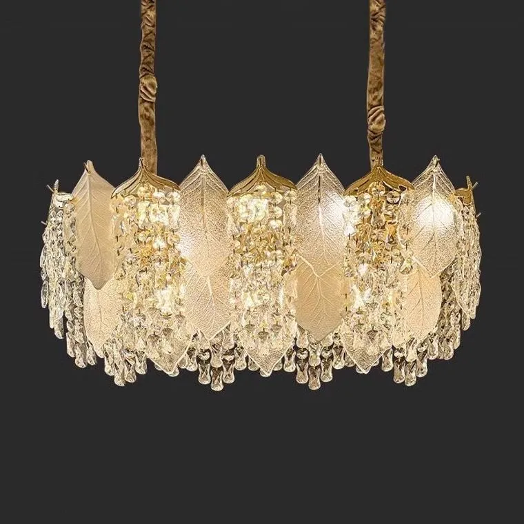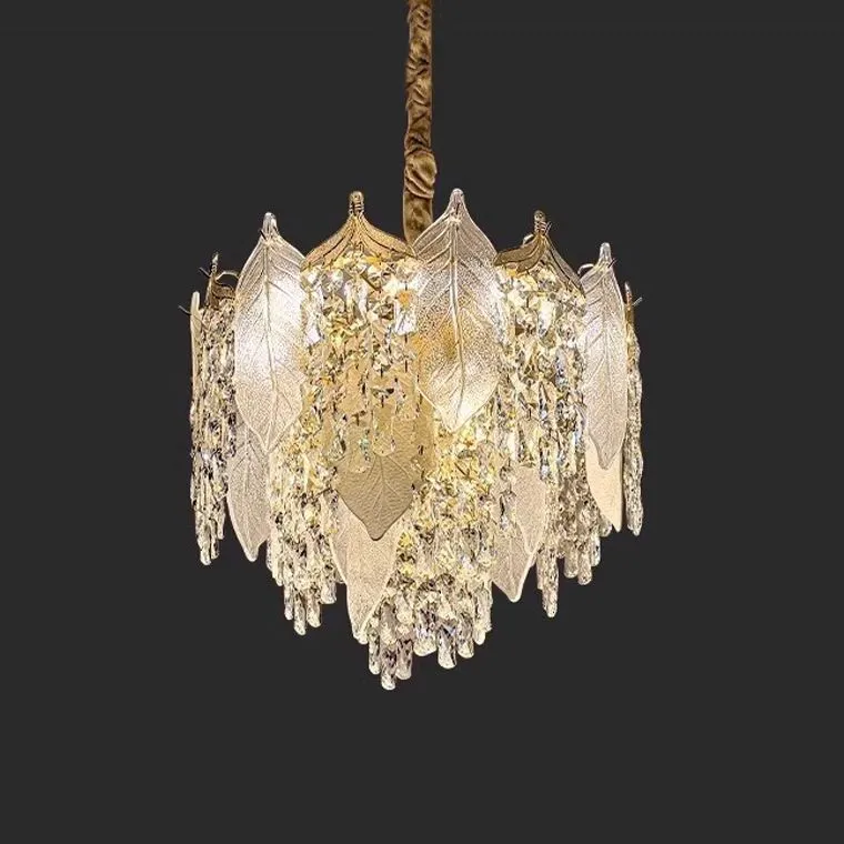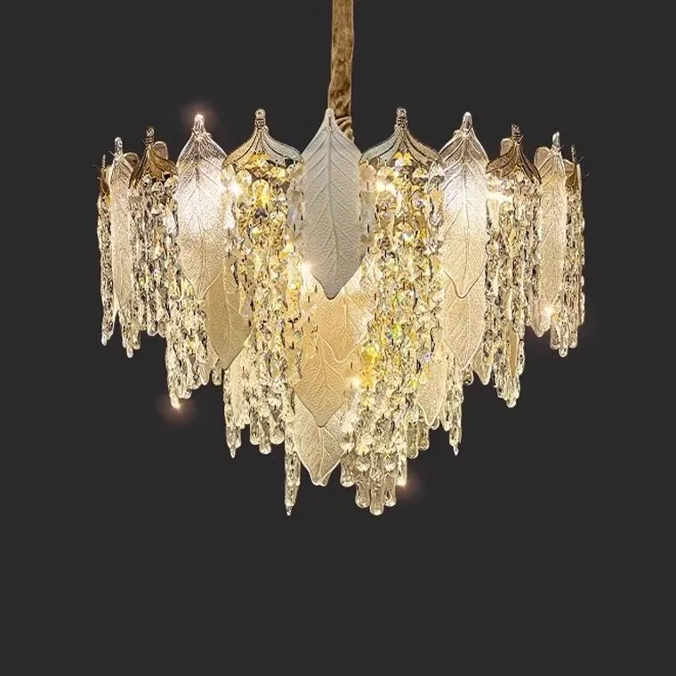 Войдя в спальню гостиную, ты оказываешься пронизанным волшебством хрустальной весны. Твой взгляд немедленно привлекает исполненная достоинства люстра с многоярусным абажуром, состоящим из изящных подвесок в форме листьев из прозрачного стекла.