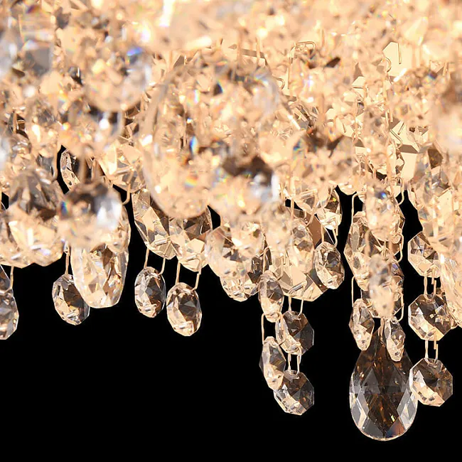 Превосходные линии каждой ветки наполняют пространство нежностью и изысканностью, расцветая перед тобой, словно нежное растение. Ты замечаешь, что каждый лист утонченно украшен хрустальными бусинами различных форм - это, казалось бы, мелочи, но они добавляют люстре невероятной яркости и драгоценности.