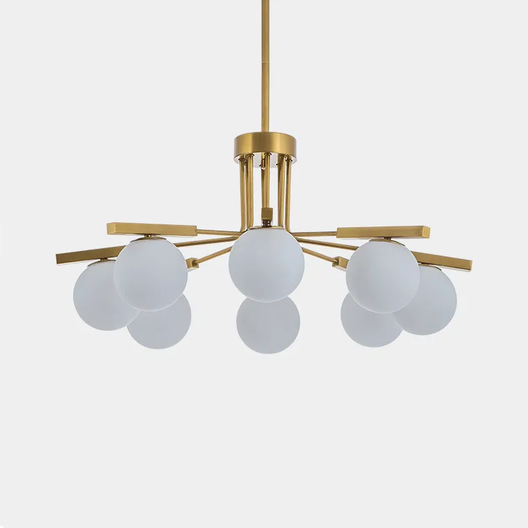 Элегантный минимализм, скандинавский стиль–сочетание белых плафонов и золотого каркаса – станет девизом вашей комнаты с люстрой VISION. Несмотря на широкий диаметр светильника, благодаря чему хорошо освещается большая часть комнаты, данная модель не кажется тяжелой и она не перегружает общую обстановку. Такое становится возможным благодаря использованию простых шарообразных плафонов из стекла. Роскошь в простоте.