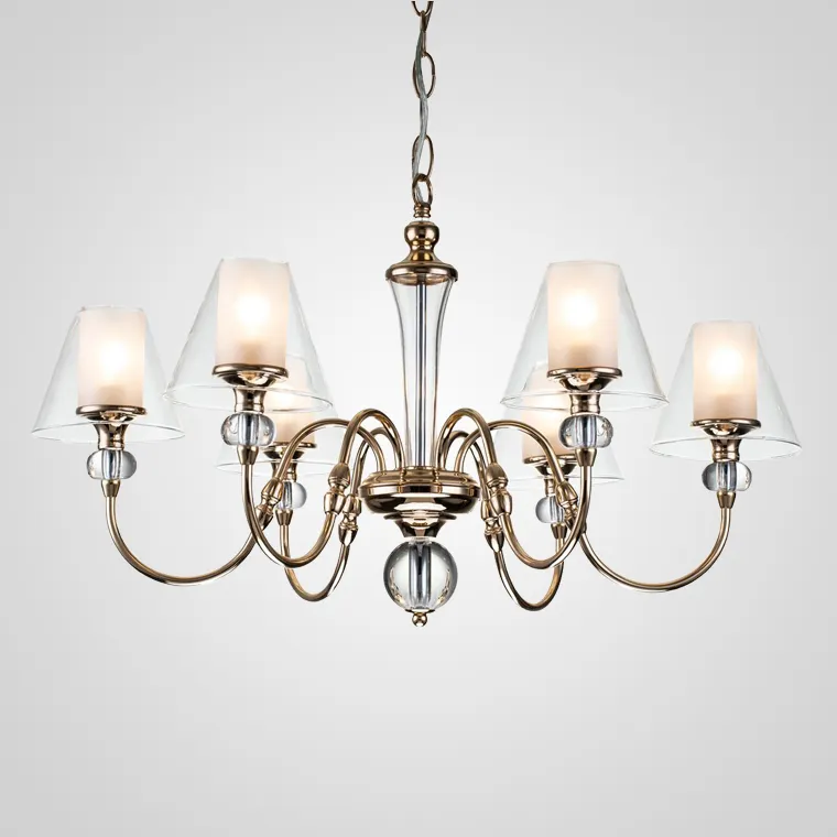 Подвесная люстра с двойными конусовидными плафонами и комбинированным корпусом из стекла и металла