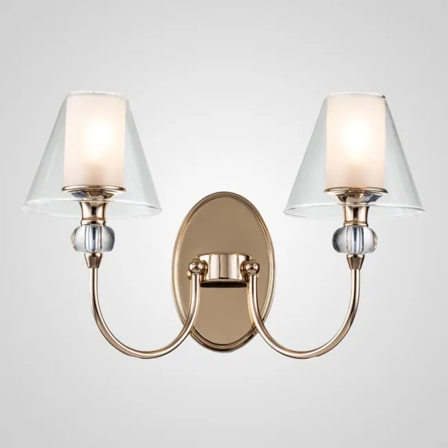 Подвесная люстра с двойными конусовидными плафонами и комбинированным корпусом из стекла и металла
