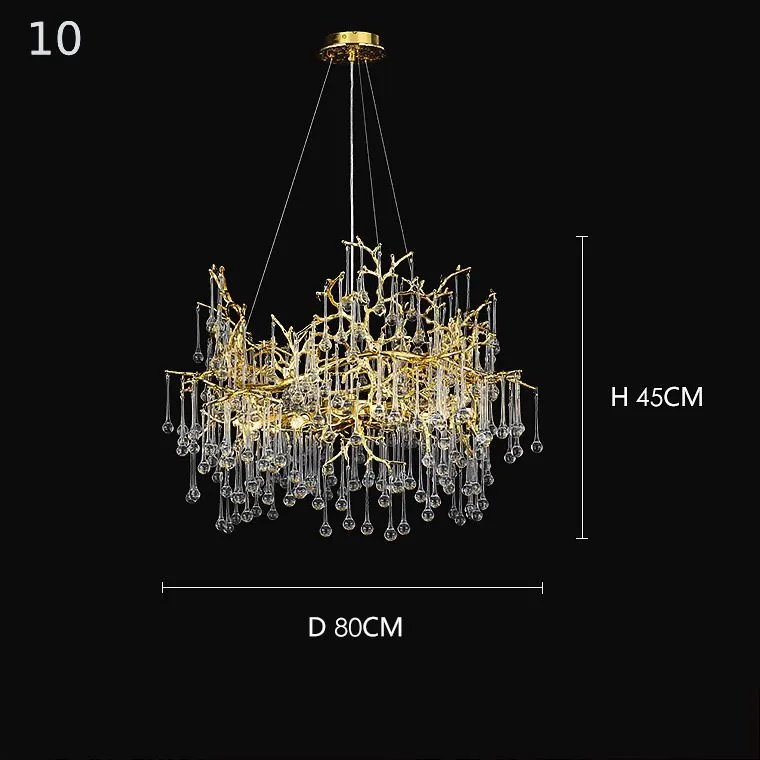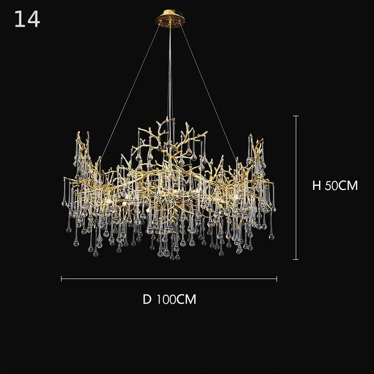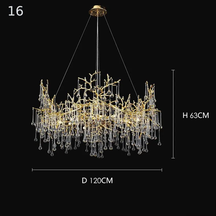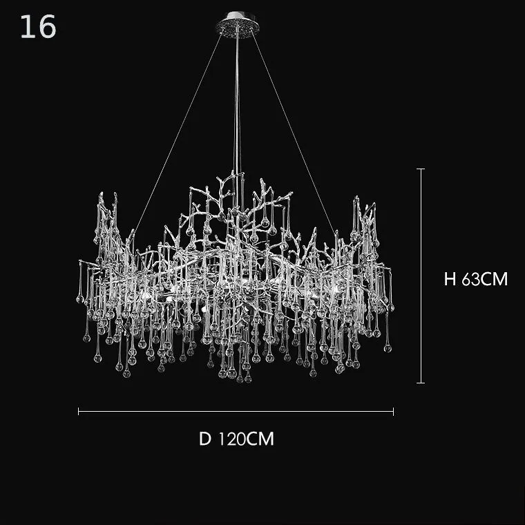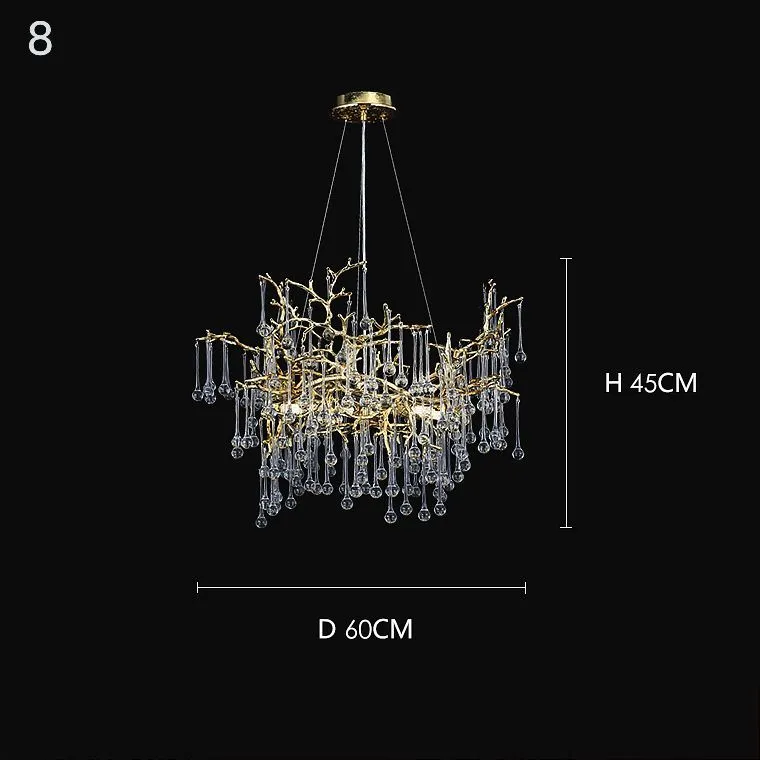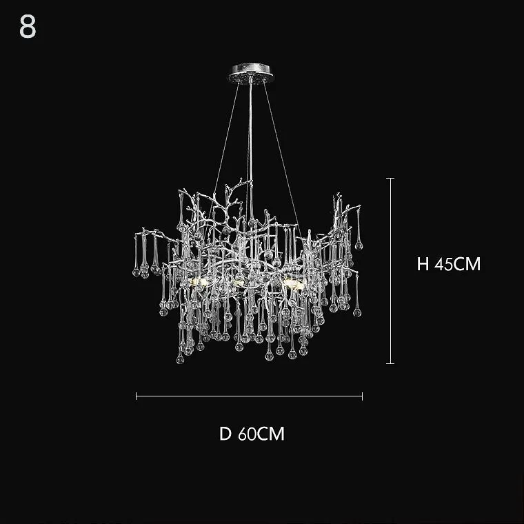 Серия люстр с подвесным декором из стеклянных капель на ветвистом каркасе