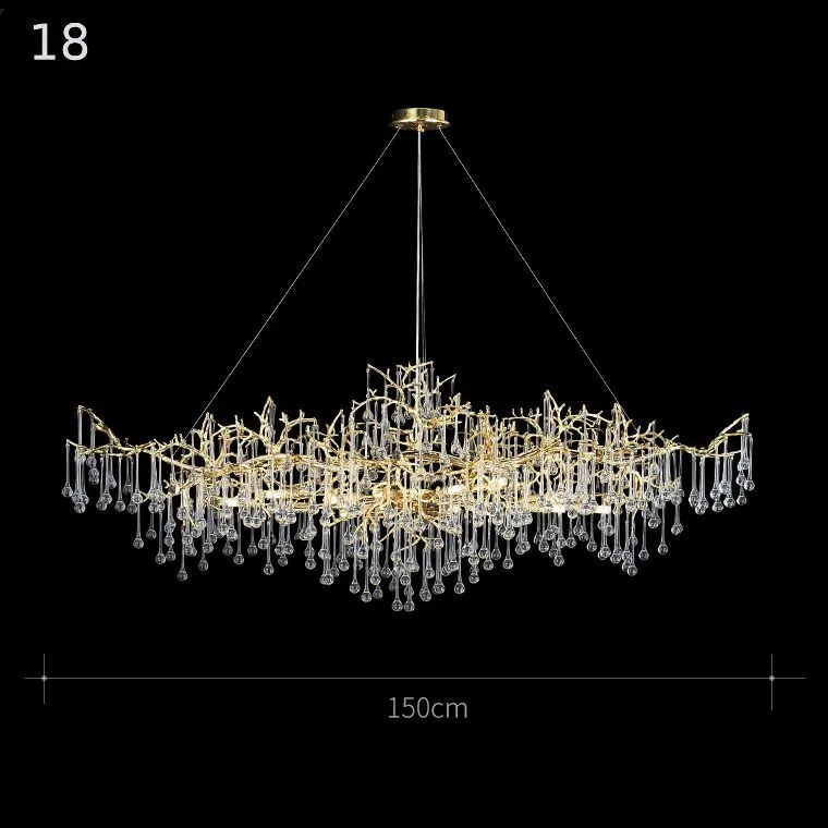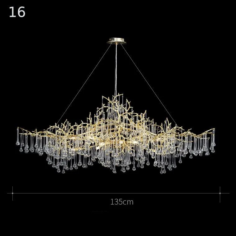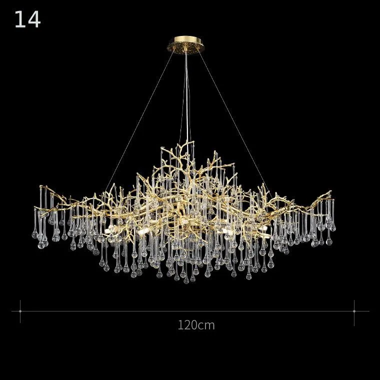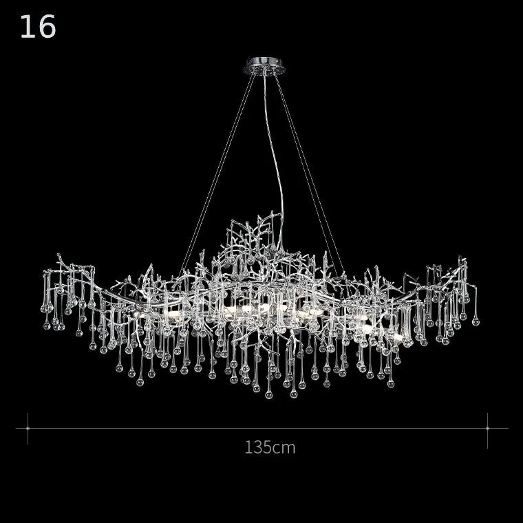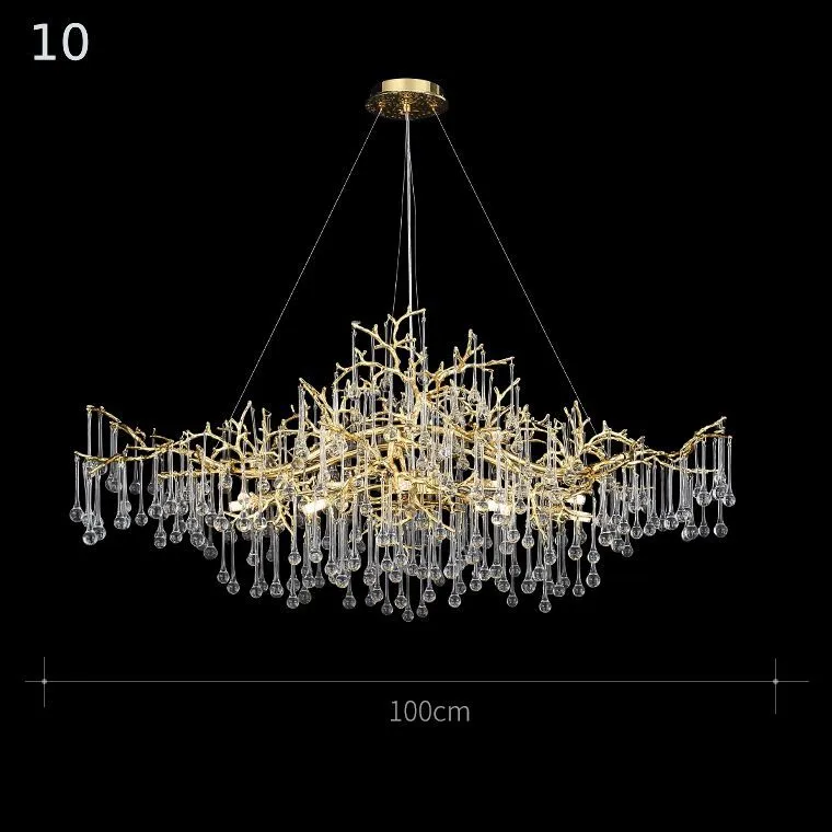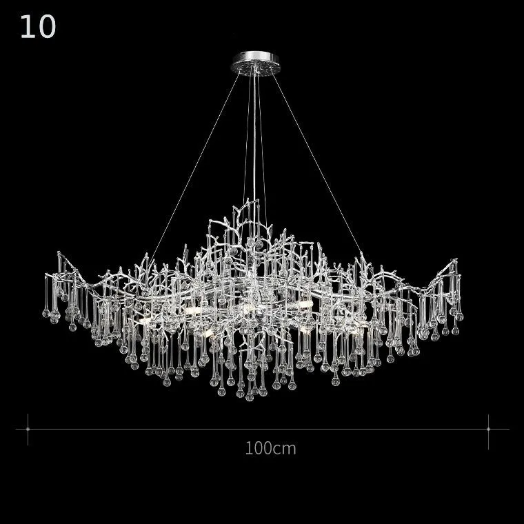 Серия люстр с подвесным декором из стеклянных капель на ветвистом каркасе