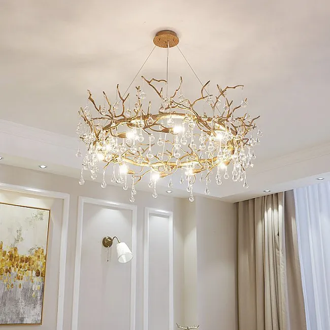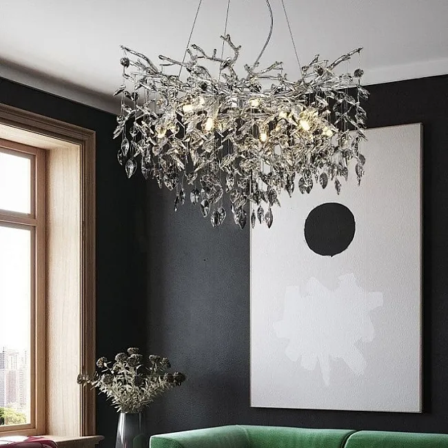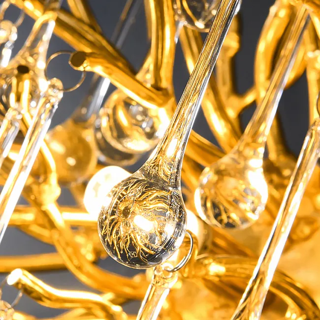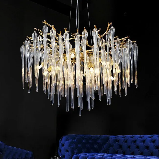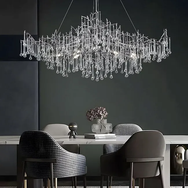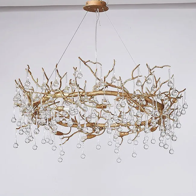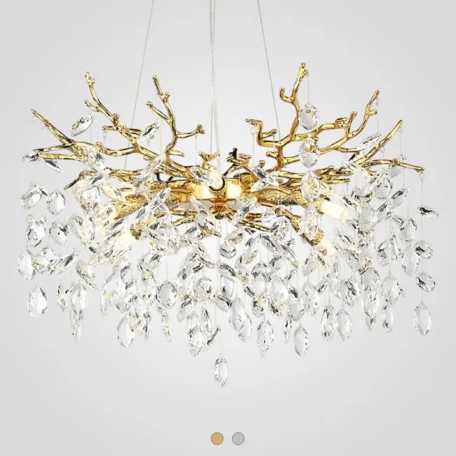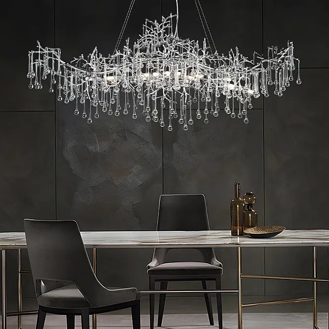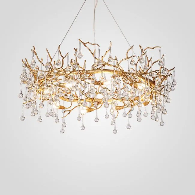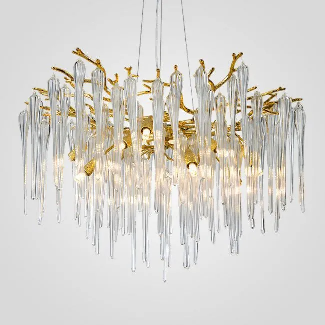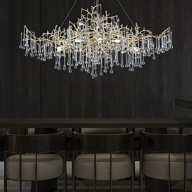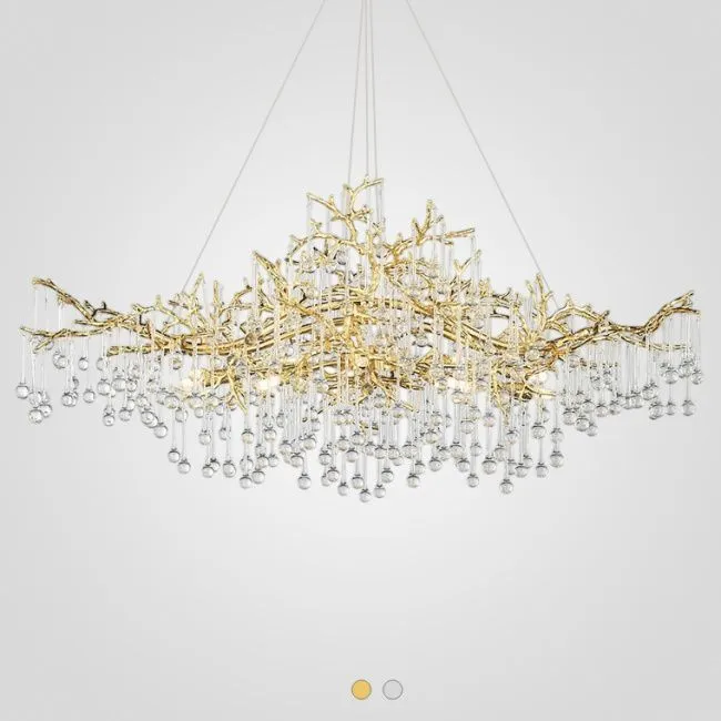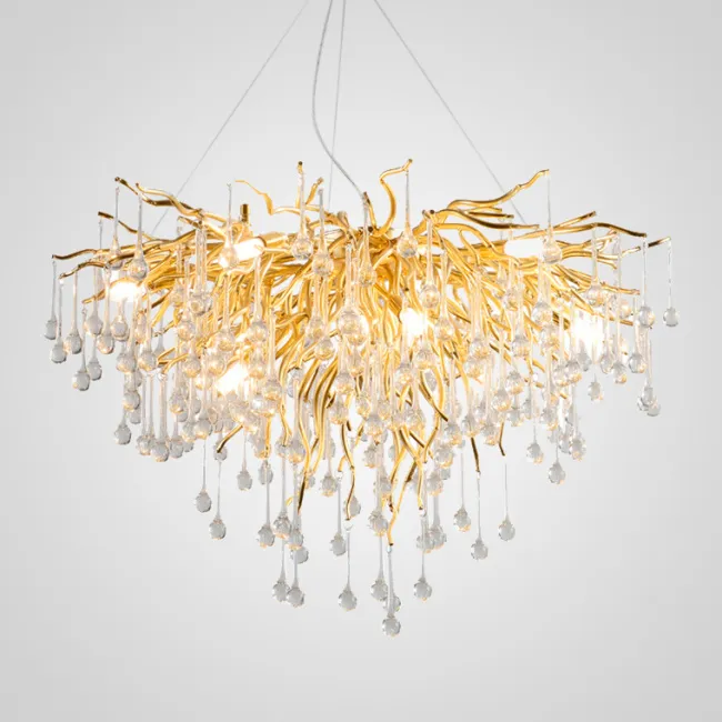 Серия люстр с подвесным декором из стеклянных капель на ветвистом каркасе