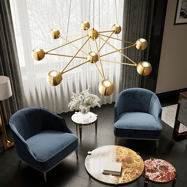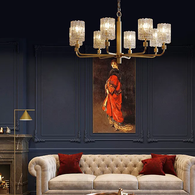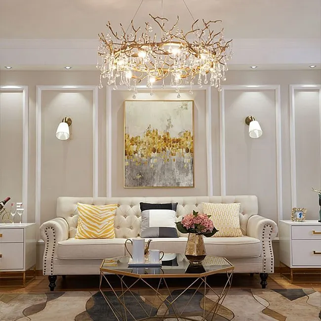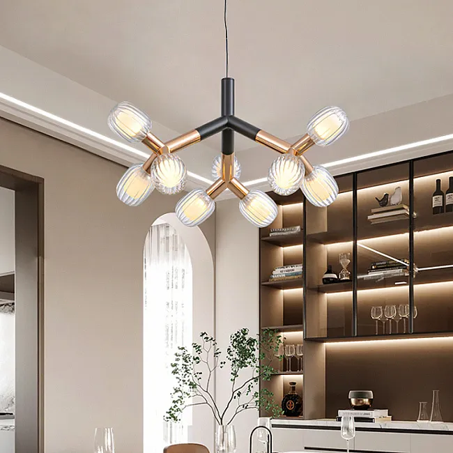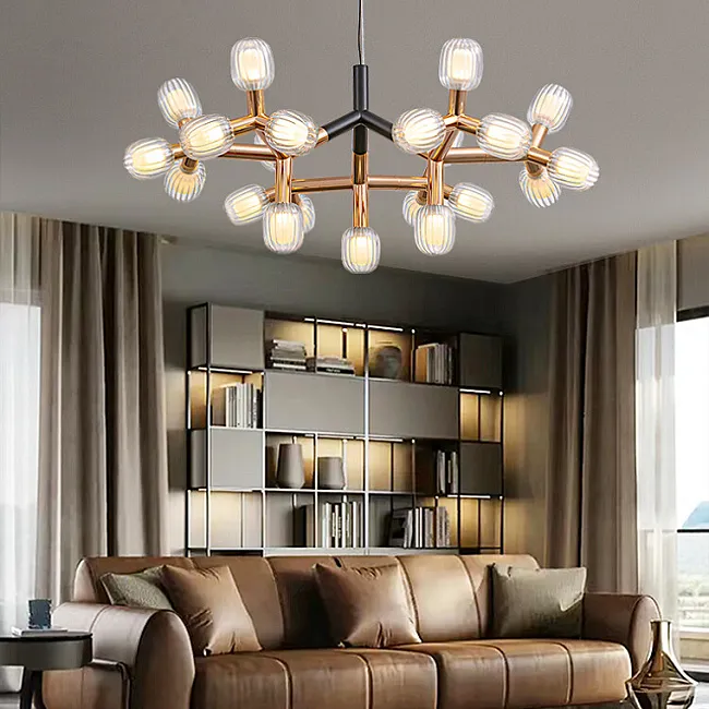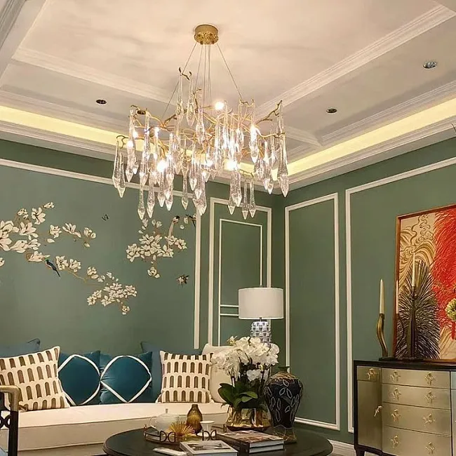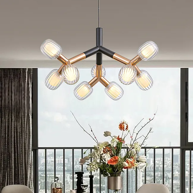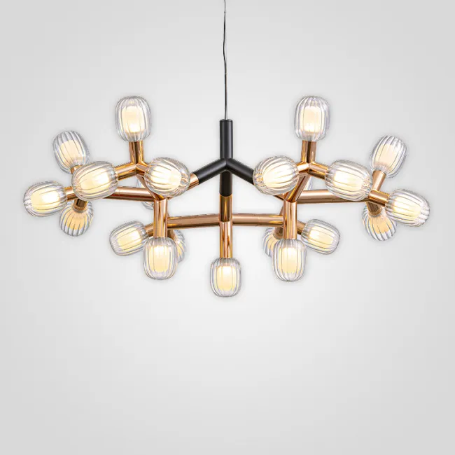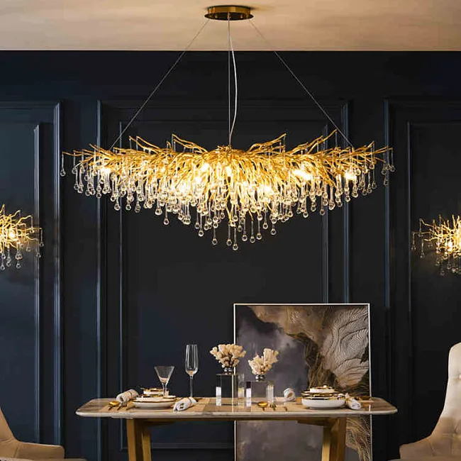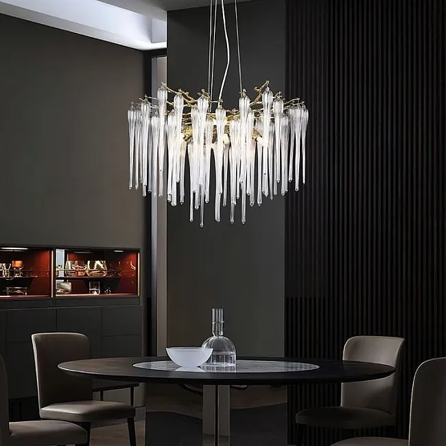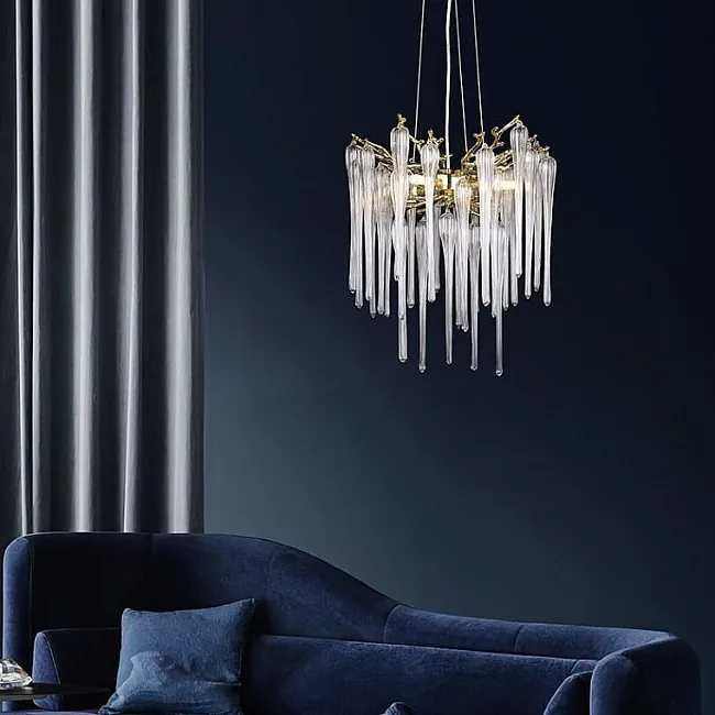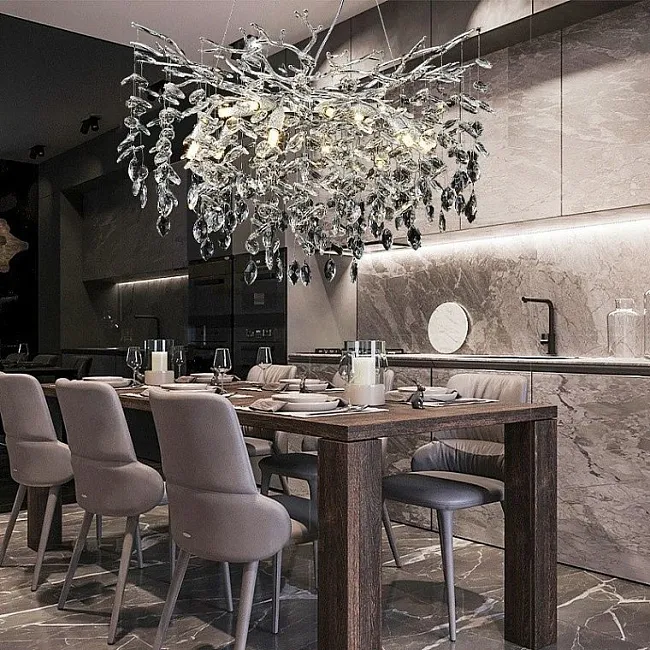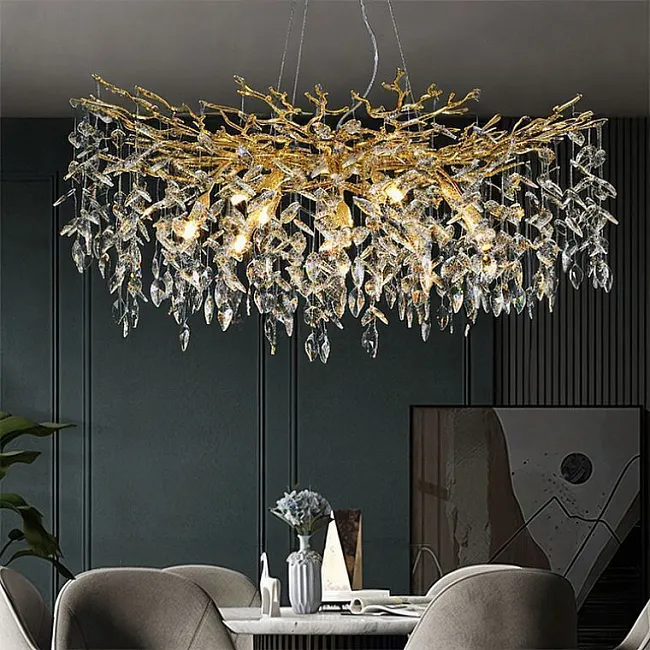 Серия люстр с подвесным декором из стеклянных капель на ветвистом каркасе
