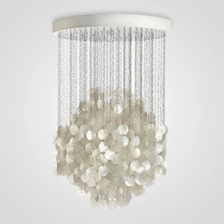 Люстра WITNEY B создана с учетом эстетичности и нежности. В дизайне используются необычные материалы, в частности, множество цепочек с нанизанными на них круглыми подвесками из натурального перламутра.