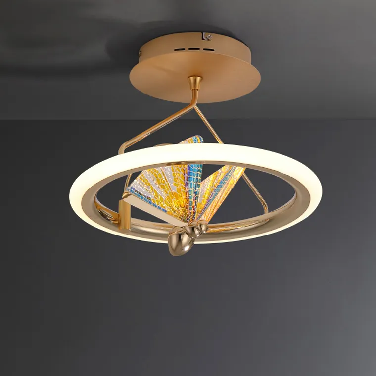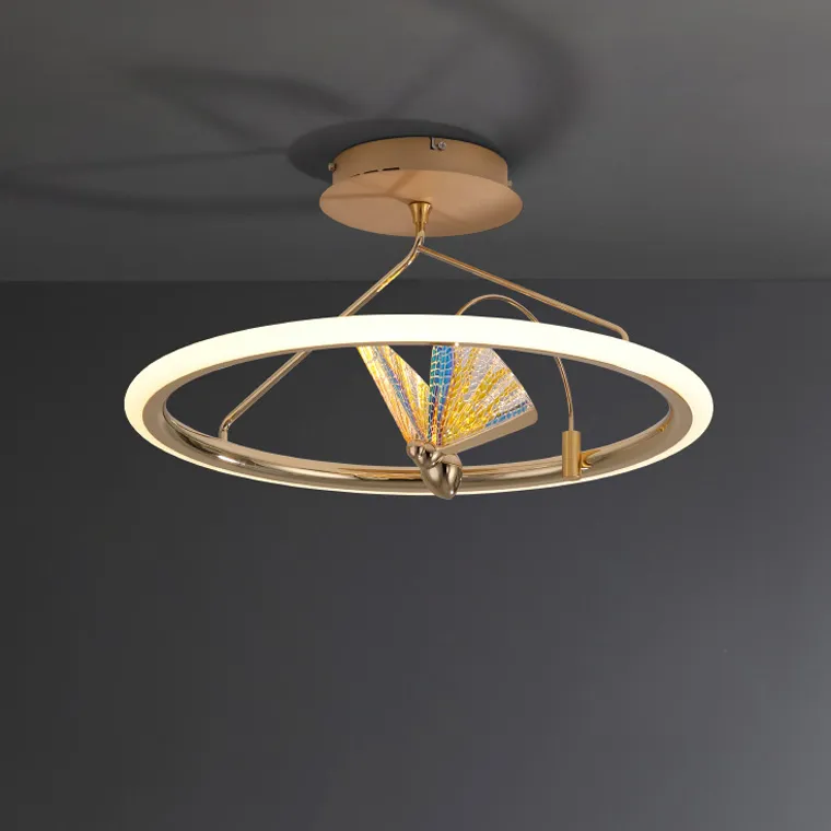 Потолочная светодиодная люстра на кольцевом каркасе с декоративной бабочкой на подвижном дугообразном держателе