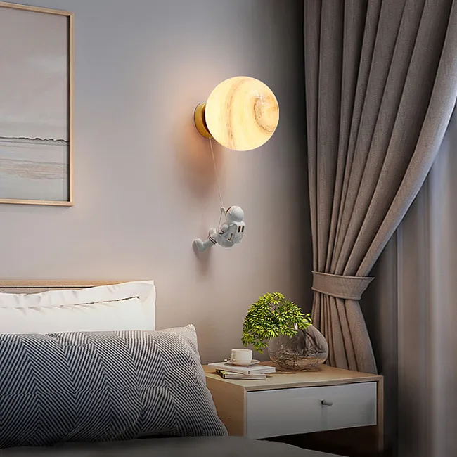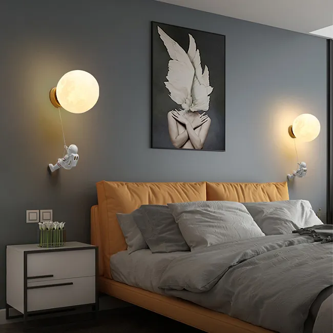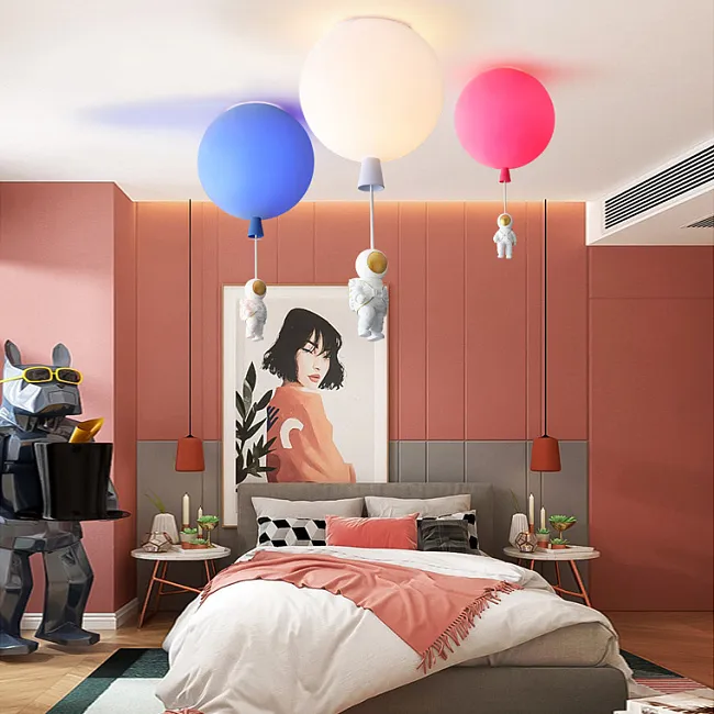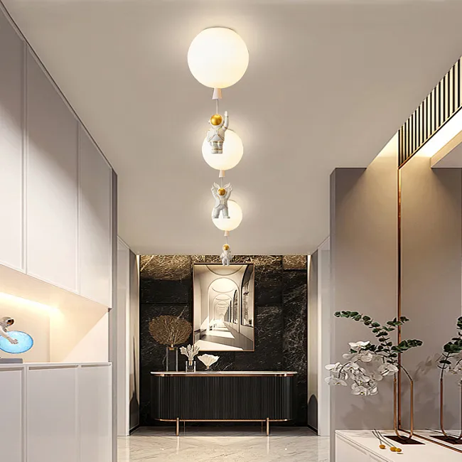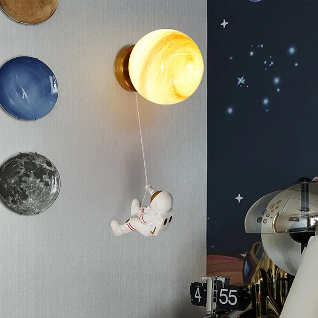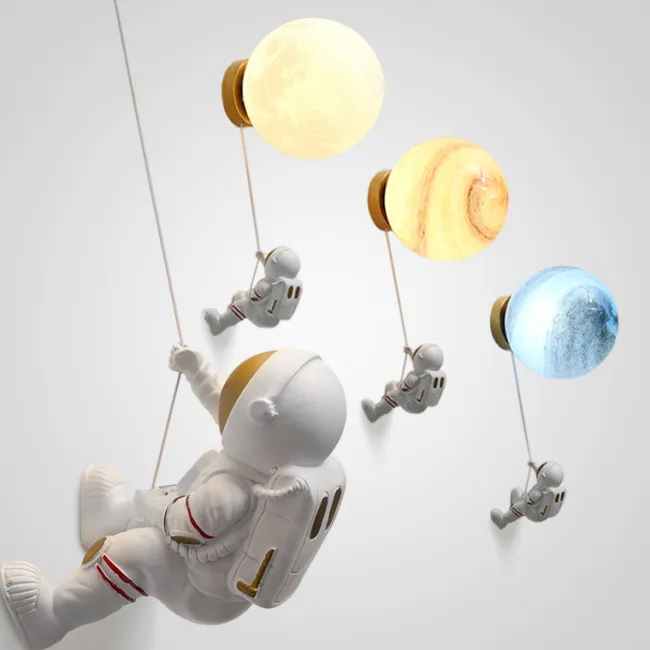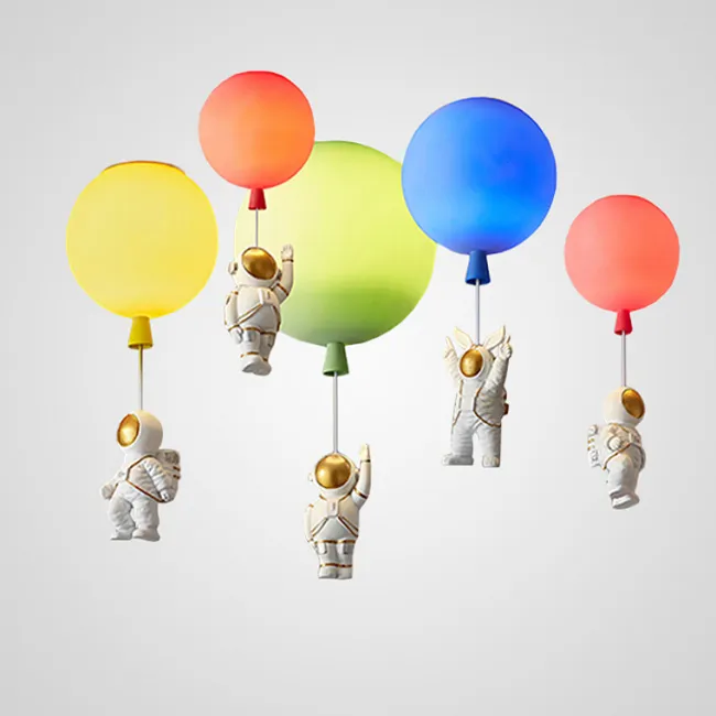 Потолочный светильник с фигурками астронавтов и центральным шаром стилизованным под Луну внутри светящегося кольца