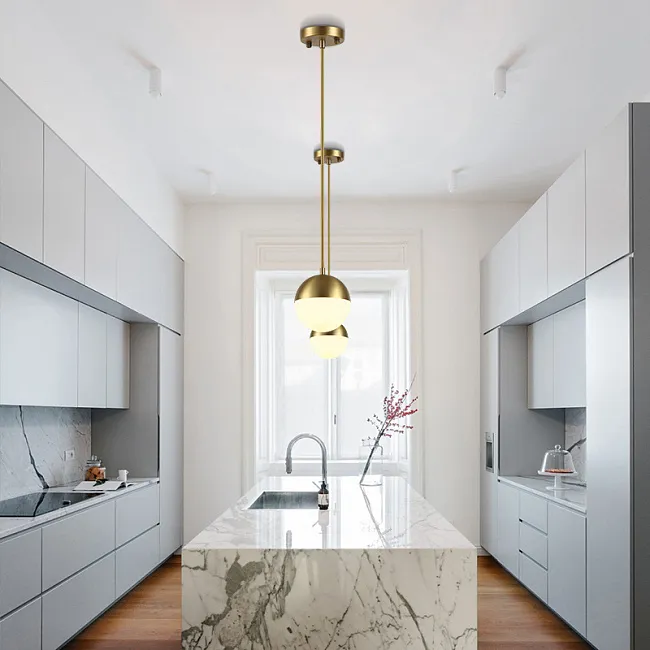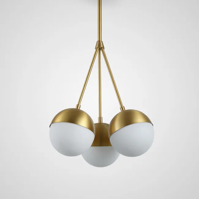 Люстра с шарообразными матовыми плафонами на вертикальных стойках разной высоты