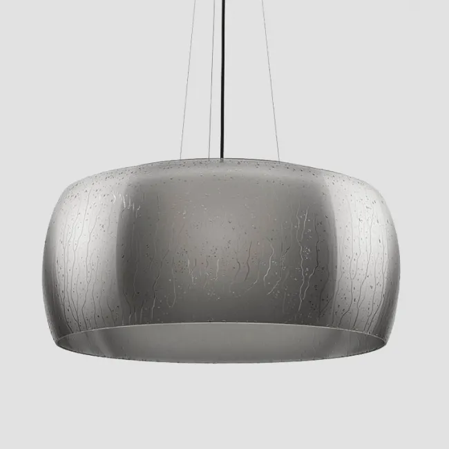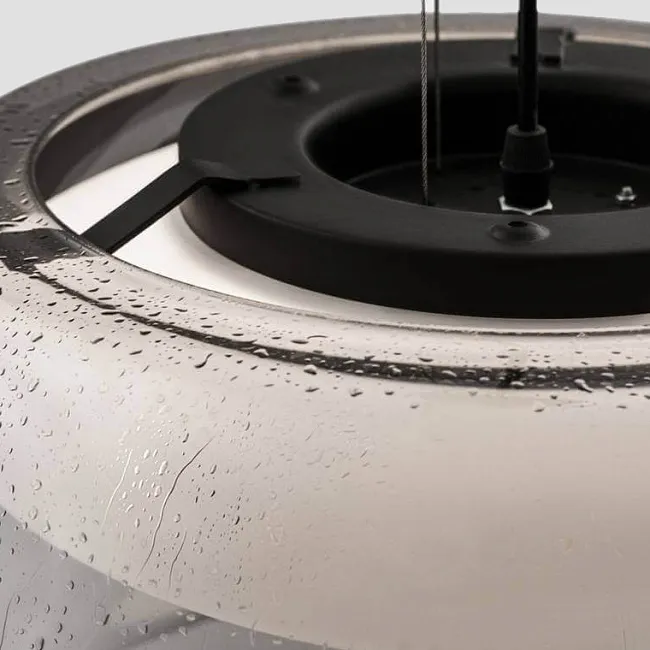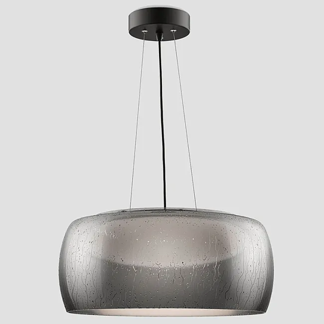 Люстра на струнном подвесе с абажуром цилиндрической формы с эффектом капель на стекле