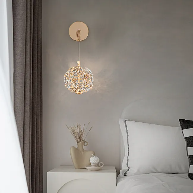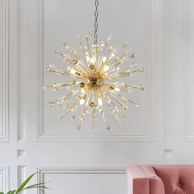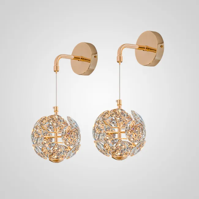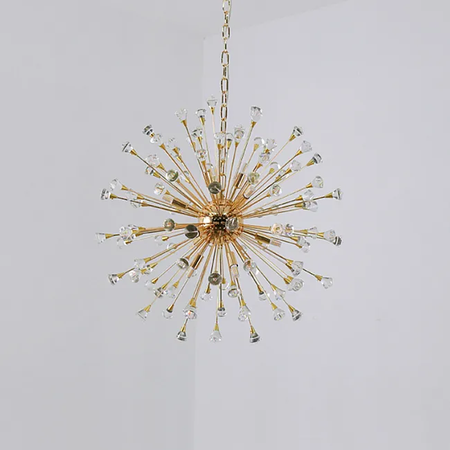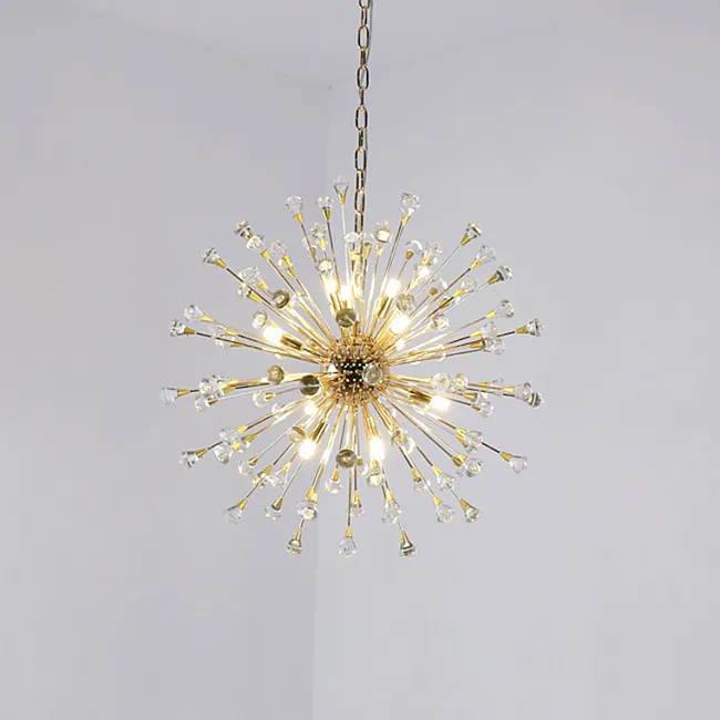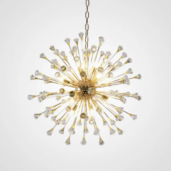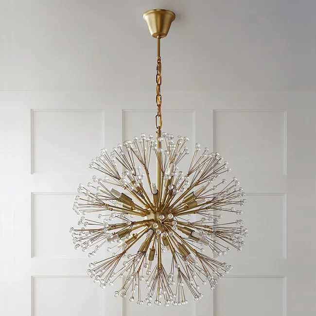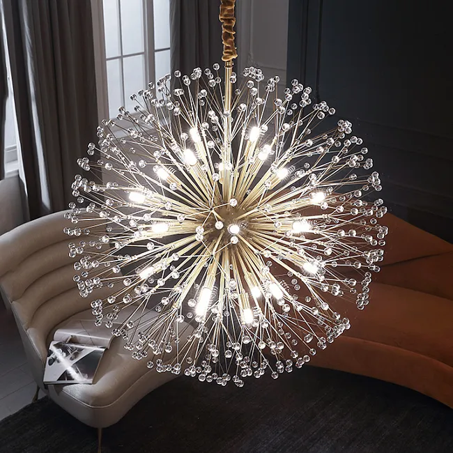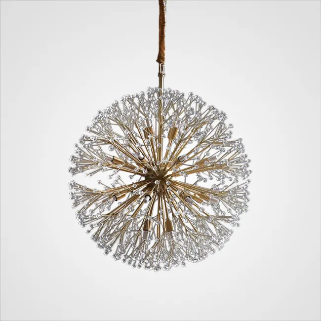 Серия потолочных светодиодных люстр шаровидной формы, собранной из металлических пучков с хрустальными камнями