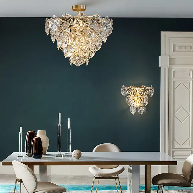 Потолочная люстра с декором из стеклянных элементов в виде стилизованных снежинок