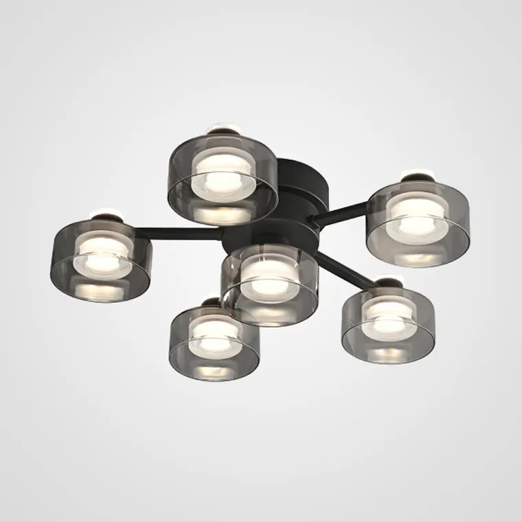 Потолочная светодиодная люстра с цилиндрическими плафонами из дымчатого стекла