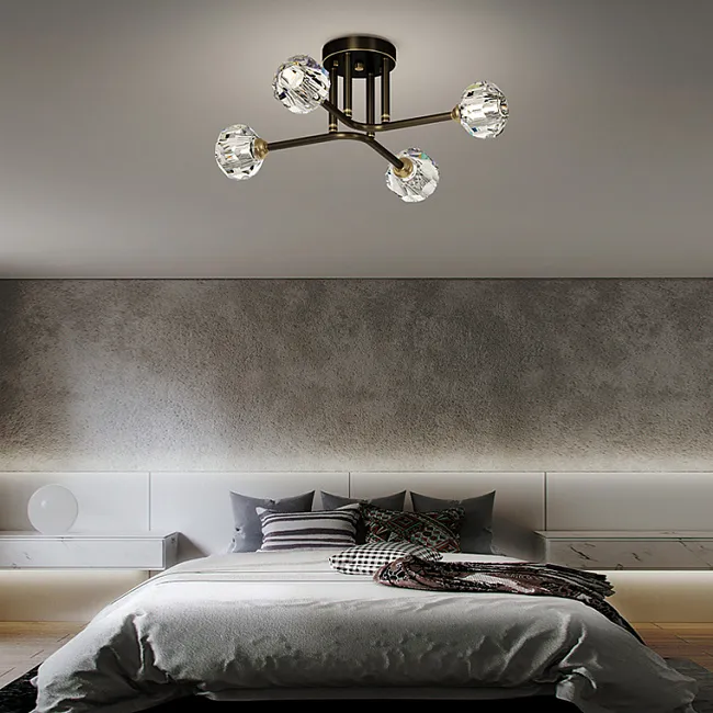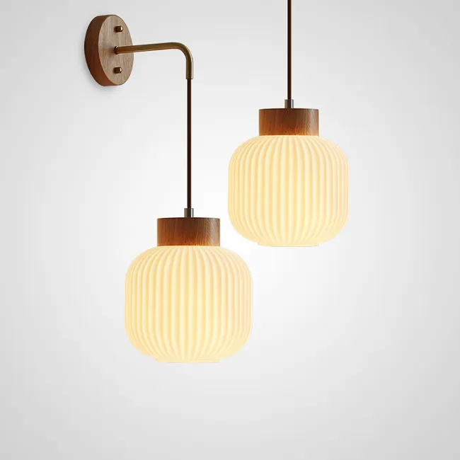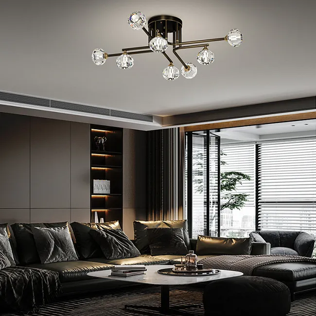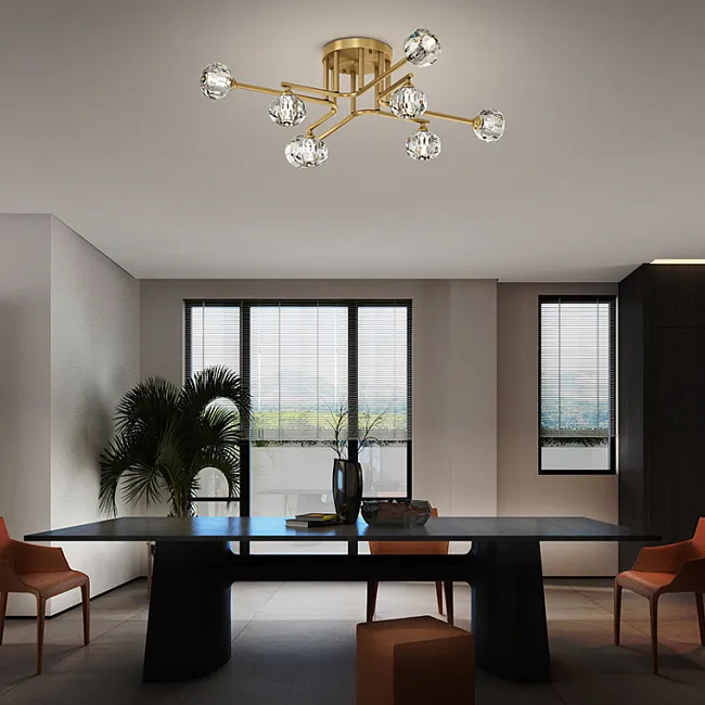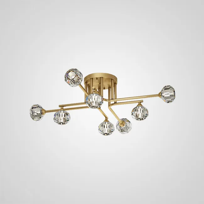 Серия потолочных люстр с рельефными плафонами из стекла на лучевом каркасе с деревянной стойкой