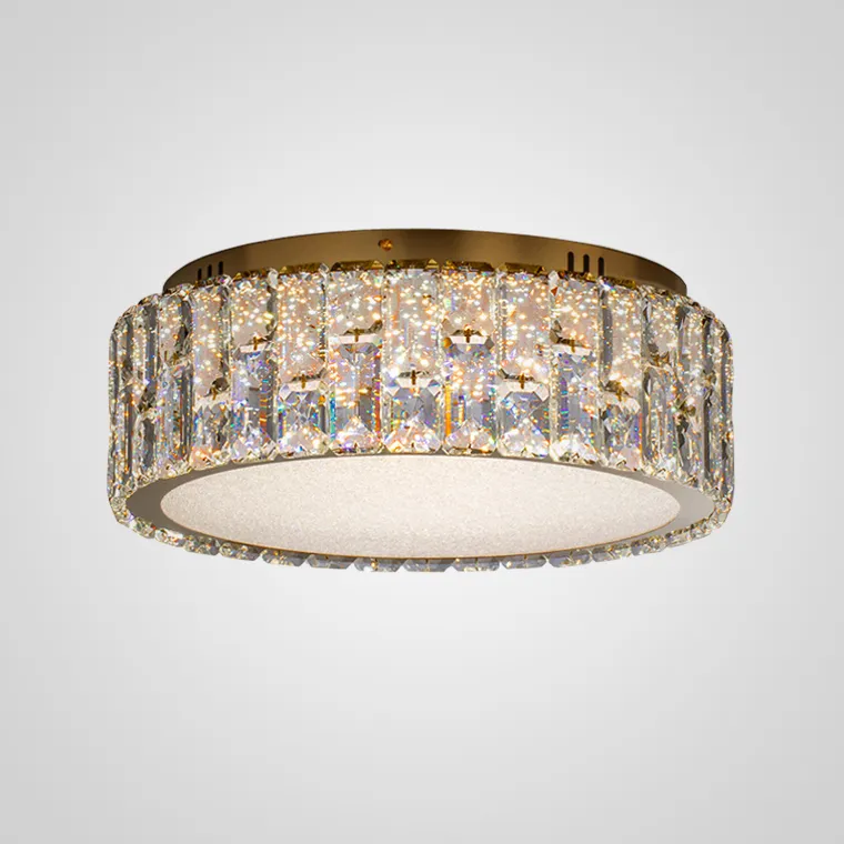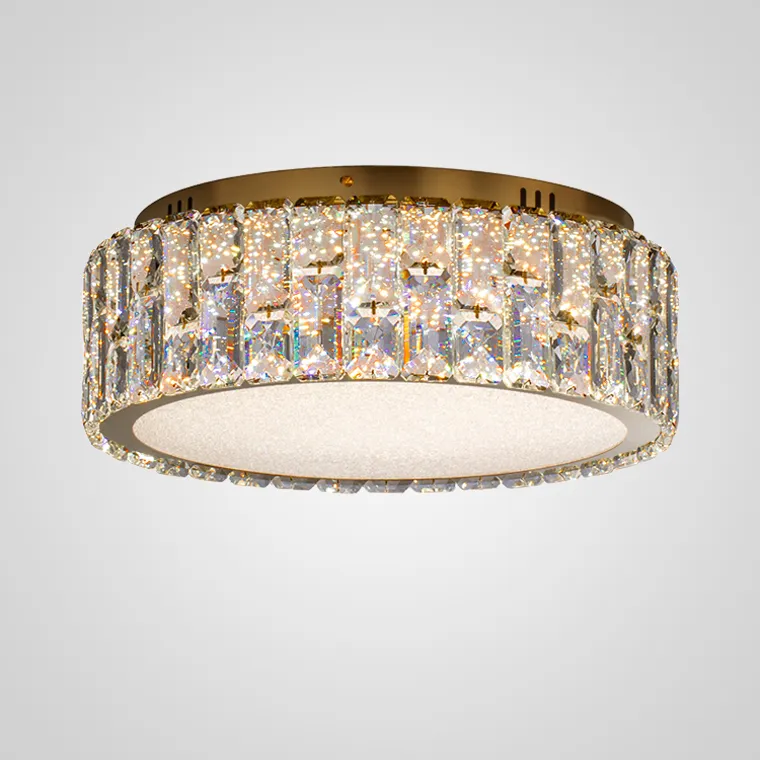 Потолочная люстра круглой формы с плафоном из хрустальных кристаллов