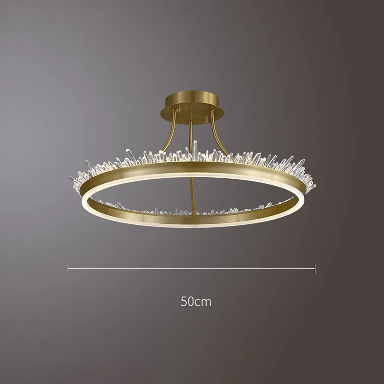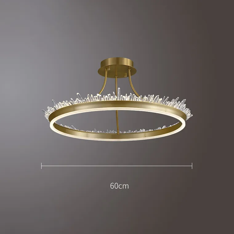Люстра для низких потолков с кольцевым каркасом и абажуром из натурального хрусталя