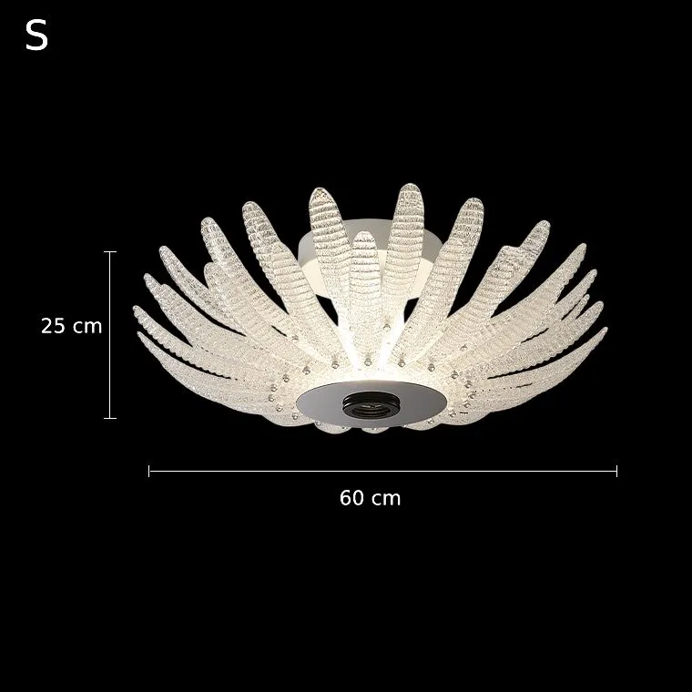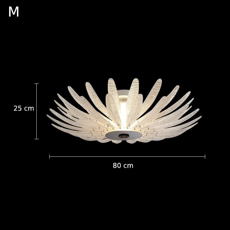 Потолочная люстра со скоплением стеклянных лепестков из рельефного стекла на стойке