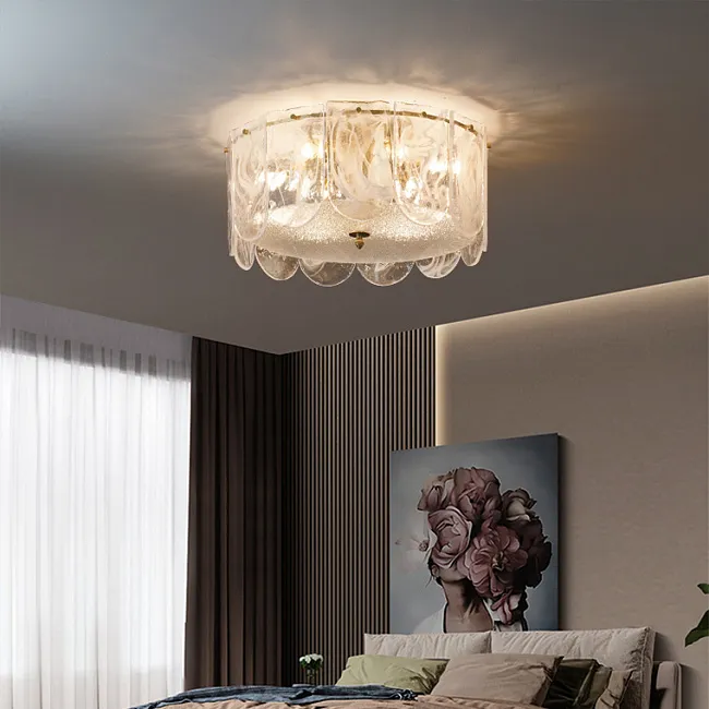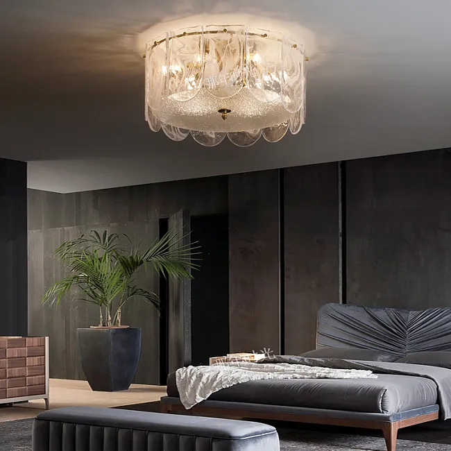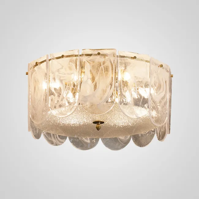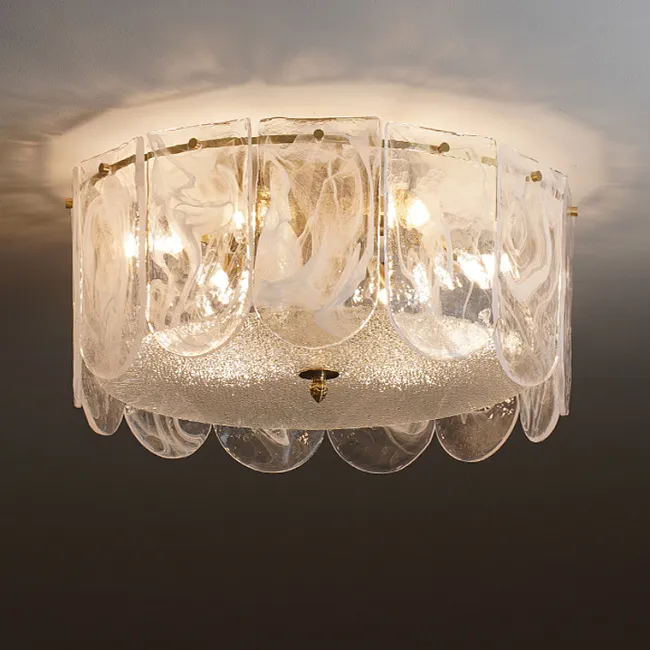 Потолочная люстра со скоплением стеклянных лепестков из рельефного стекла на стойке