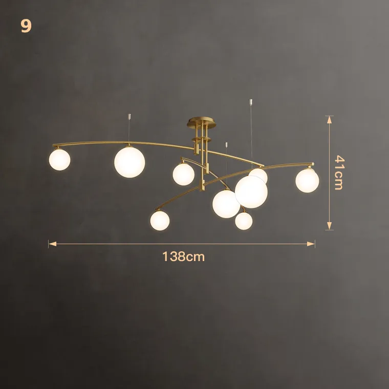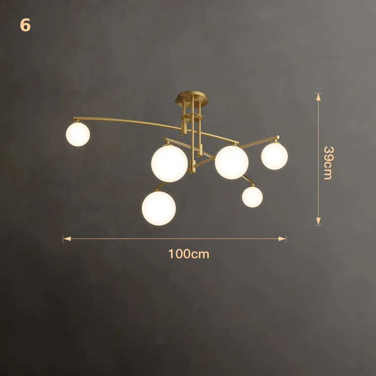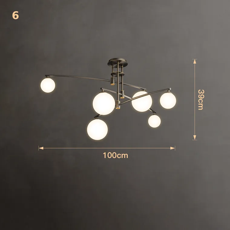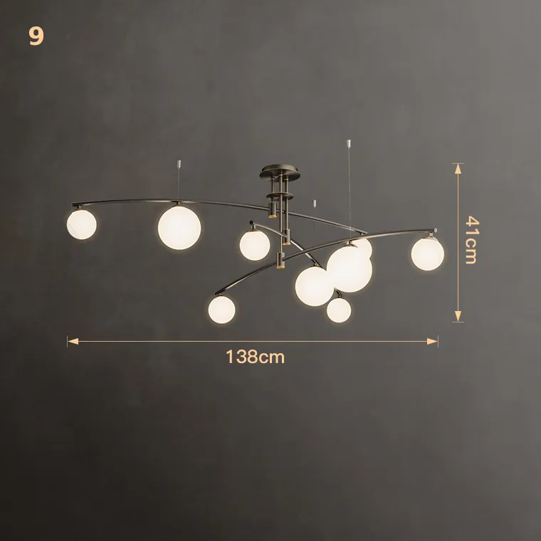 Серия потолочных люстр с разноразмерными шарообразными плафонами на штангах