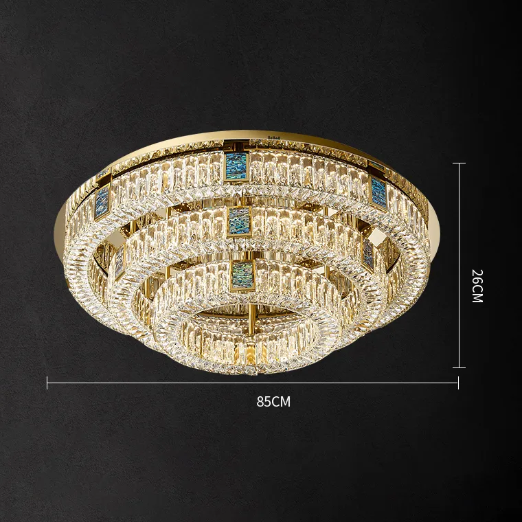 Серия многоярусных люстр для низких потолков с абажуром из хрустальных пластин и прямоугольными вставками из натурального перламутра