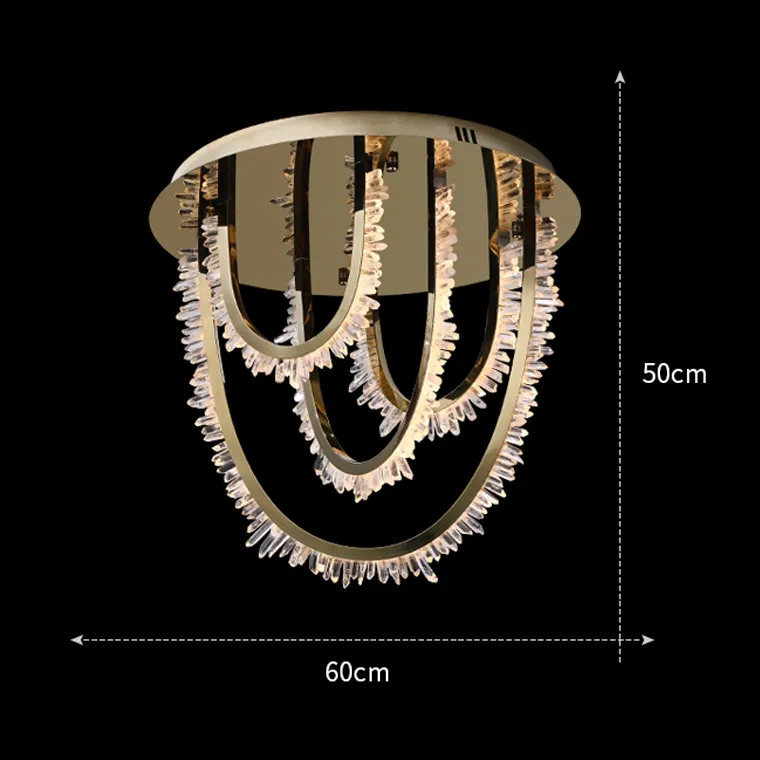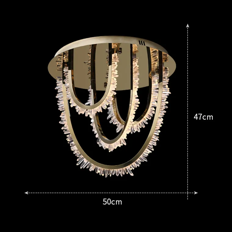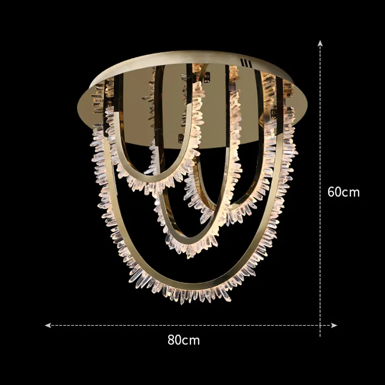 Светодиодная люстра в виде дугообразных плафонов с натуральными хрустальными камнями на внешнем контуре