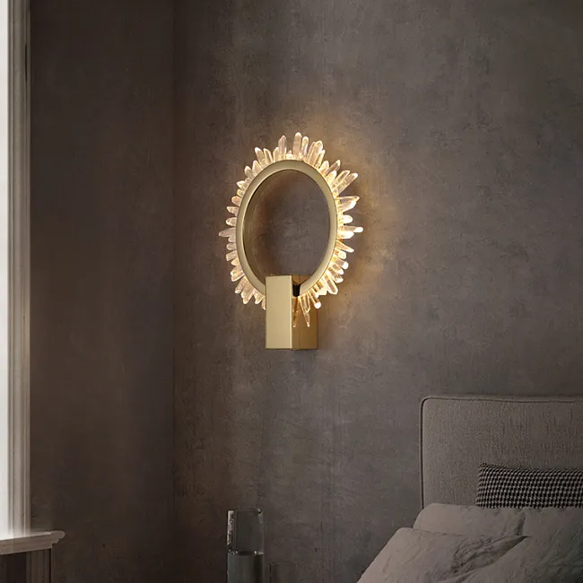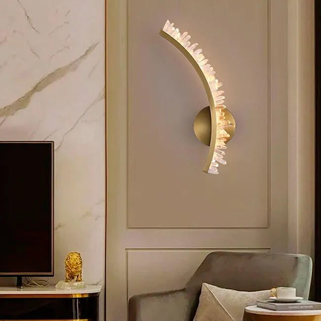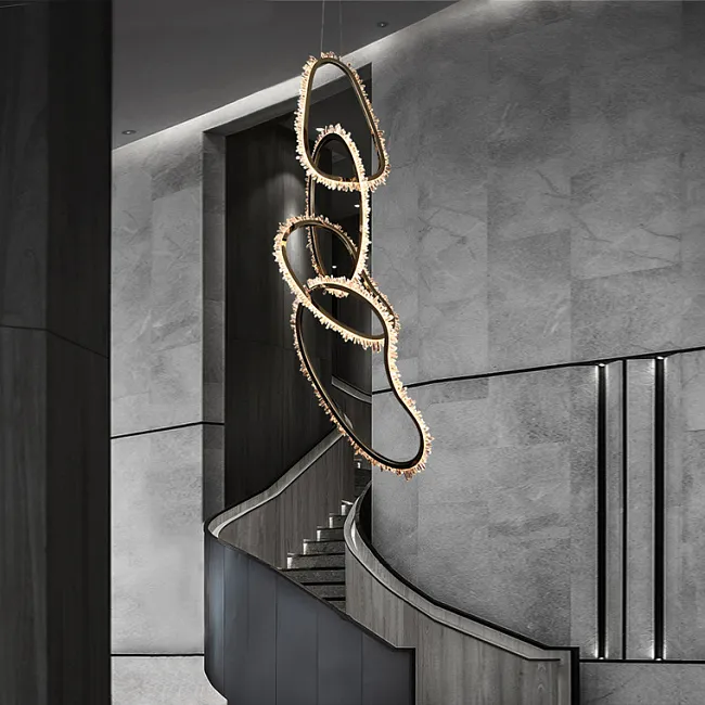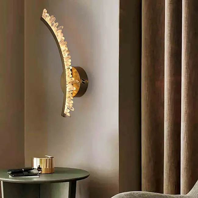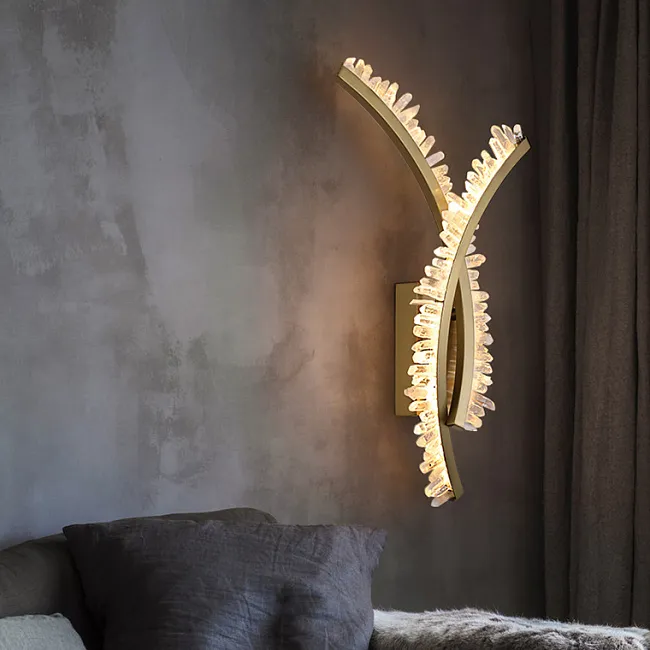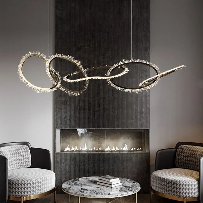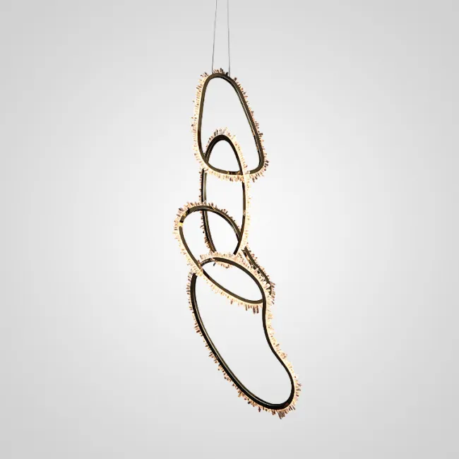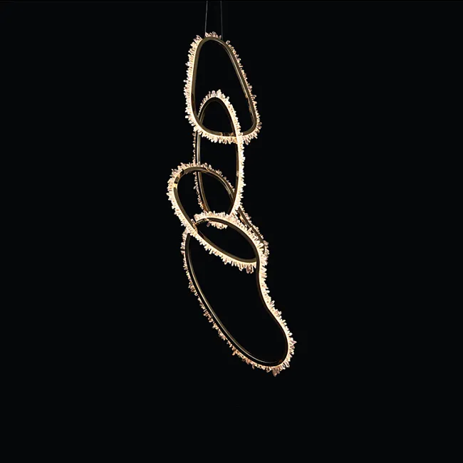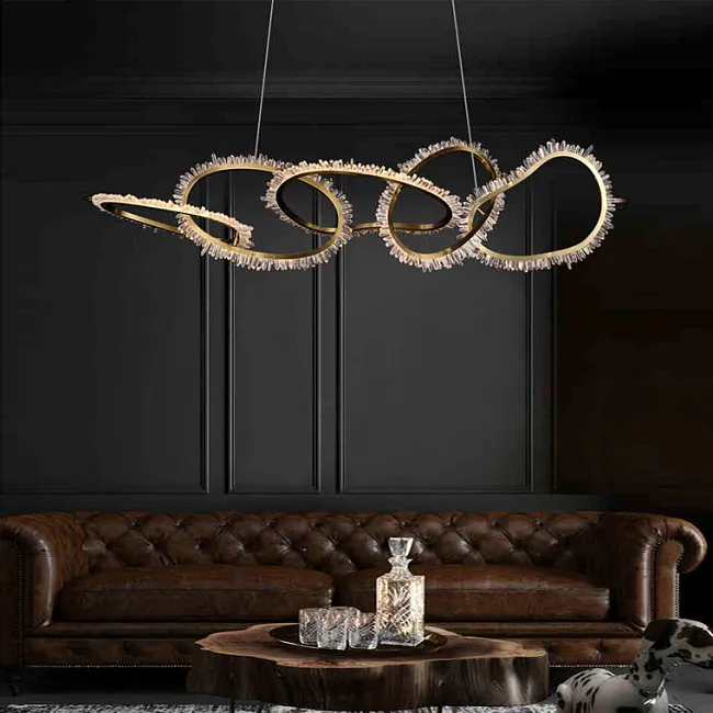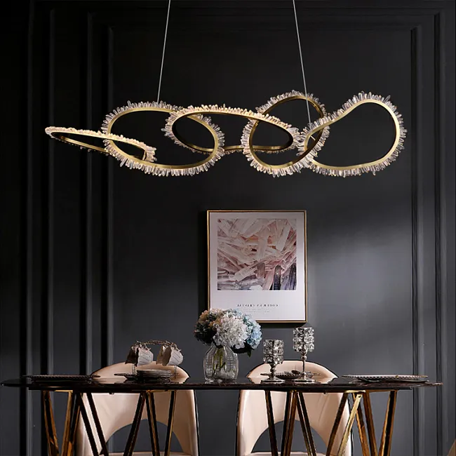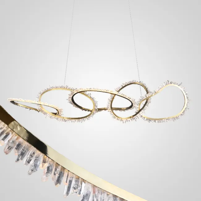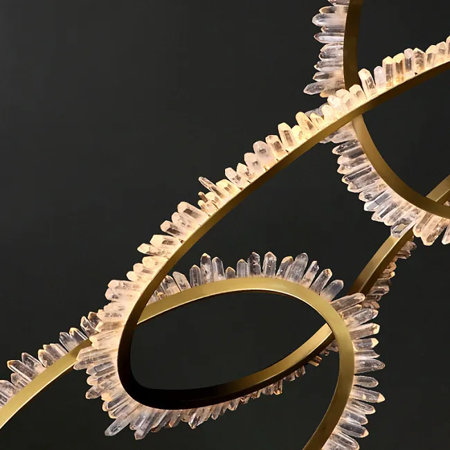 Светодиодная люстра в виде дугообразных плафонов с натуральными хрустальными камнями на внешнем контуре