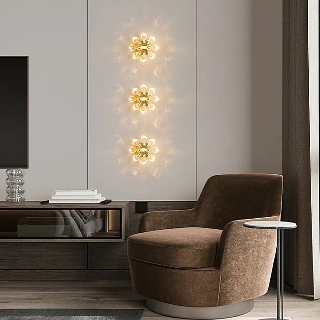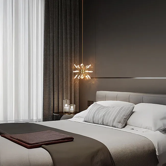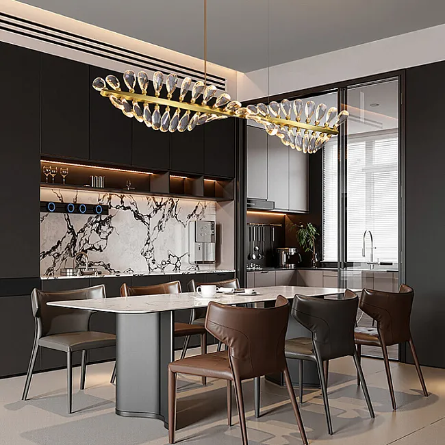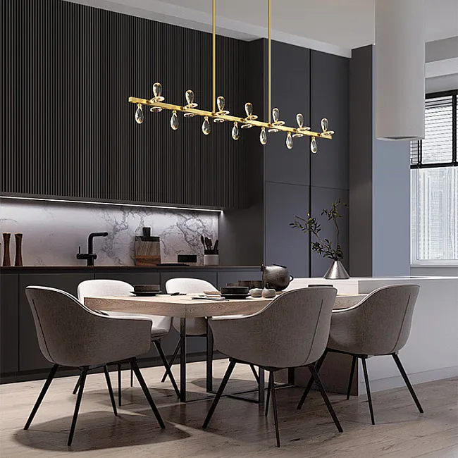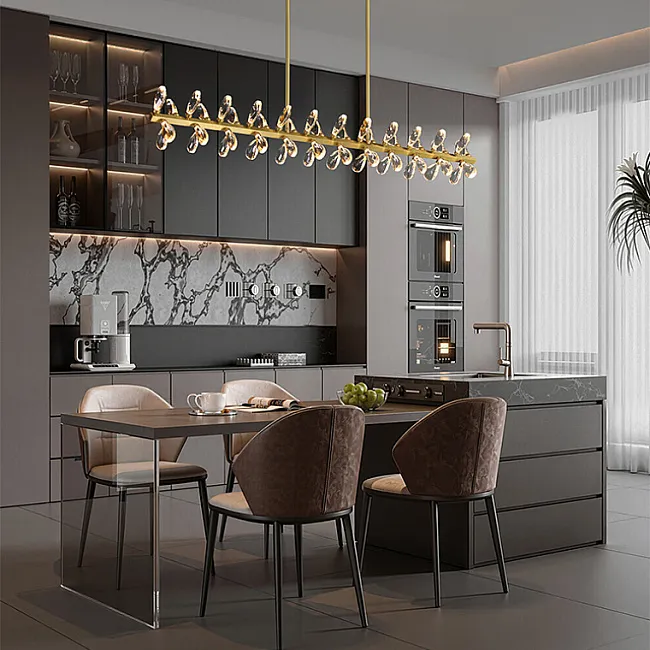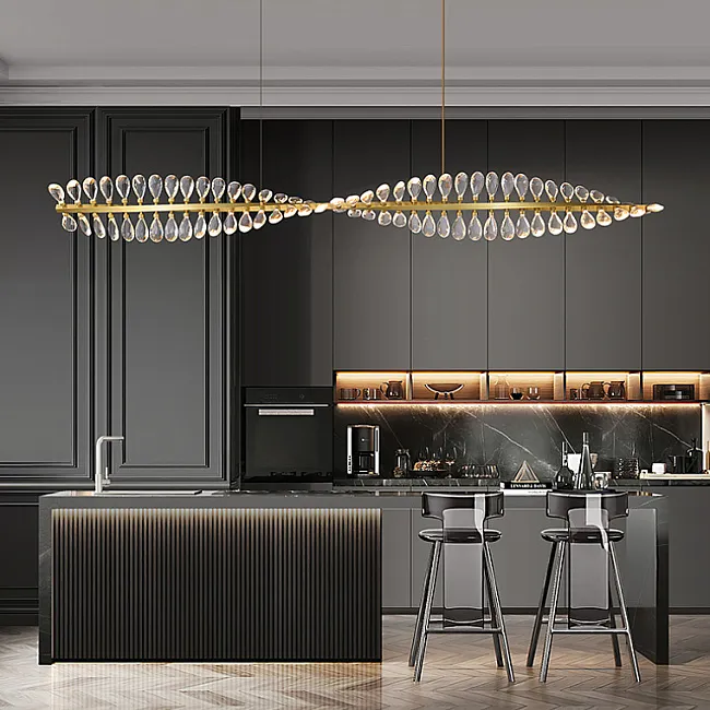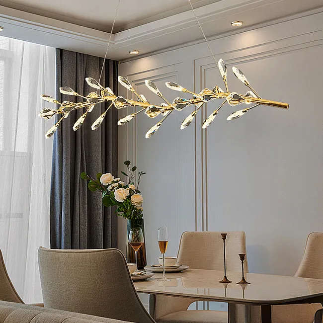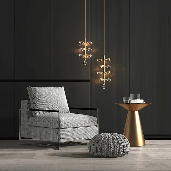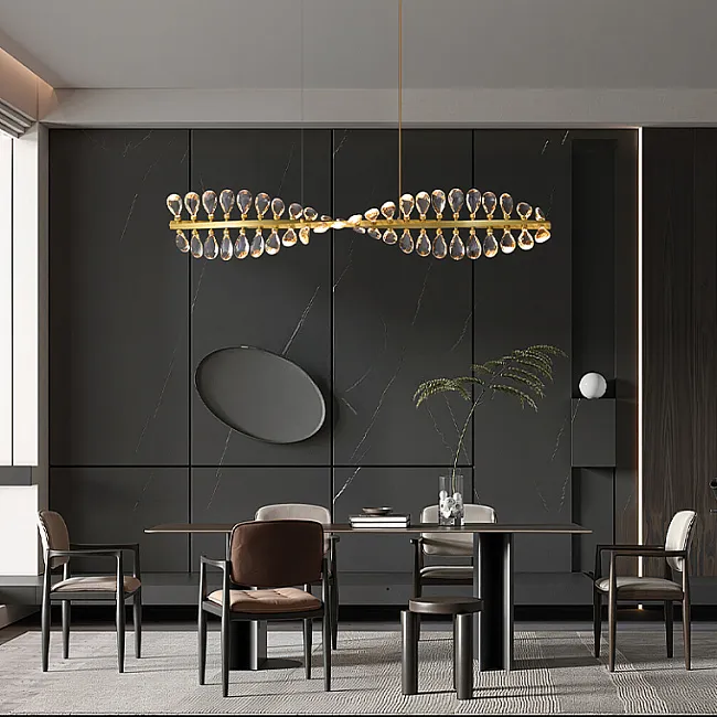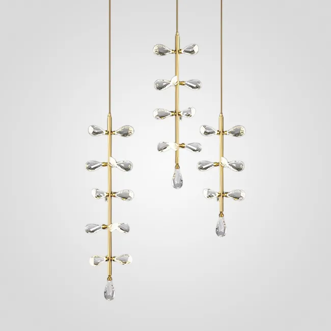 Серия потолочных люстр со светодиодными источниками света в виде кристаллов из улучшенного хрусталя марки K9