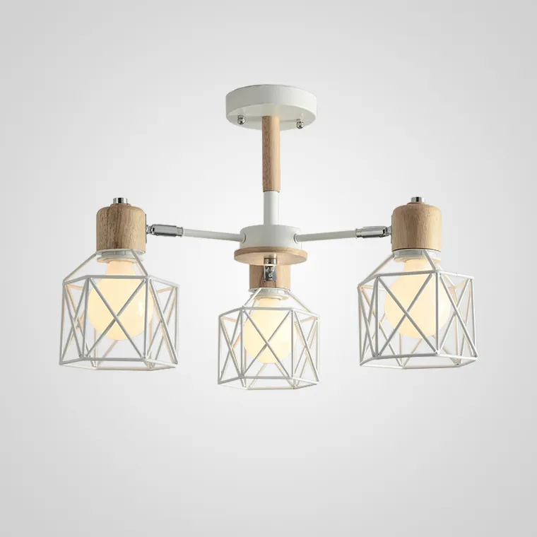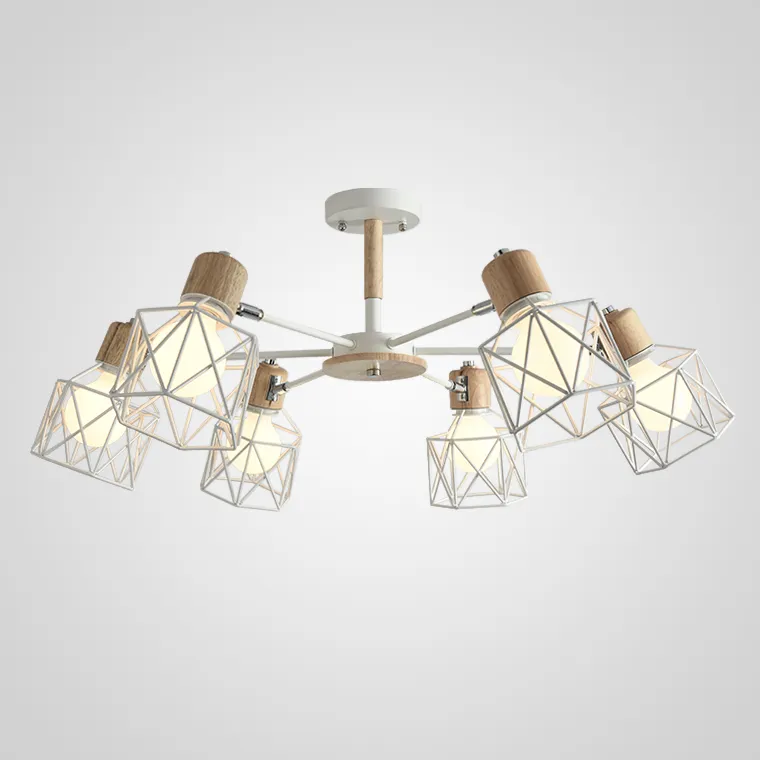 Люстра L-GRIDI-A-20 Люстра из металлических прутьев и деревянных элементов для низких потолков. Микс стилей сканди и лофт - дерево и геометрия, простота и эстетичность. Тип цоколя: Е27. Материал: Металл
