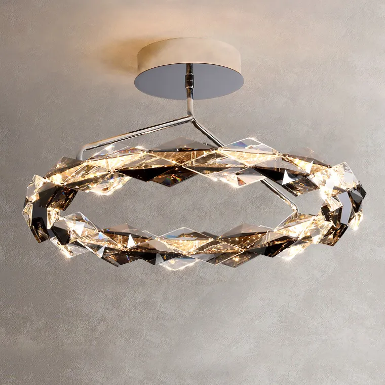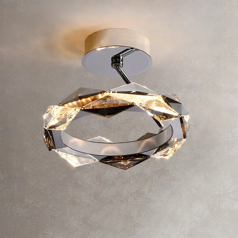 Серия потолочных светодиодных люстр с хрустальными рассеивателями в виде накладных пластин ромбической формы