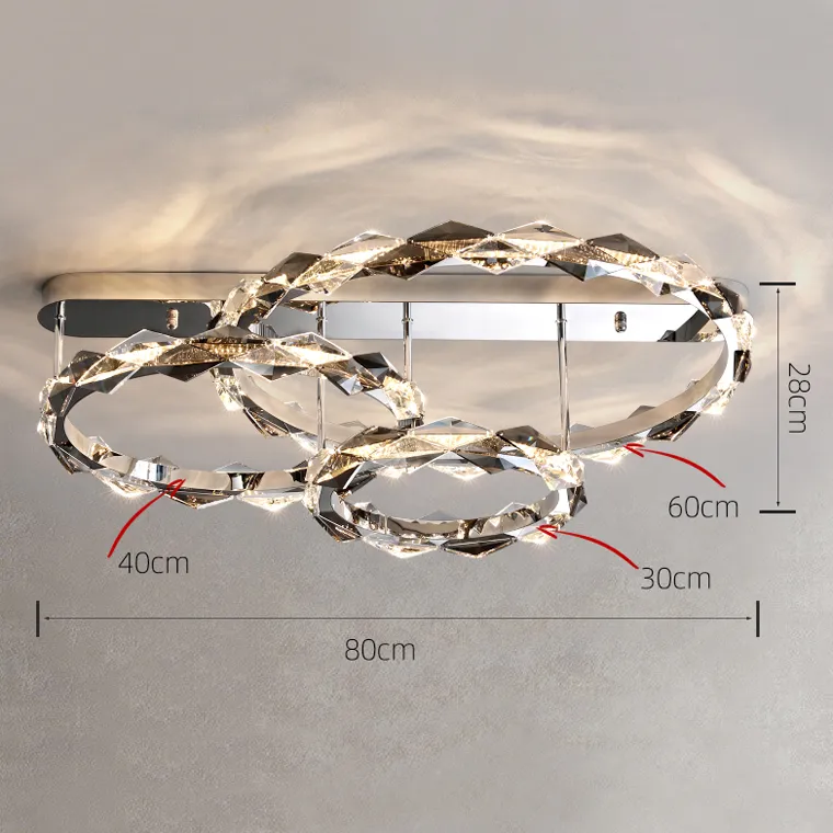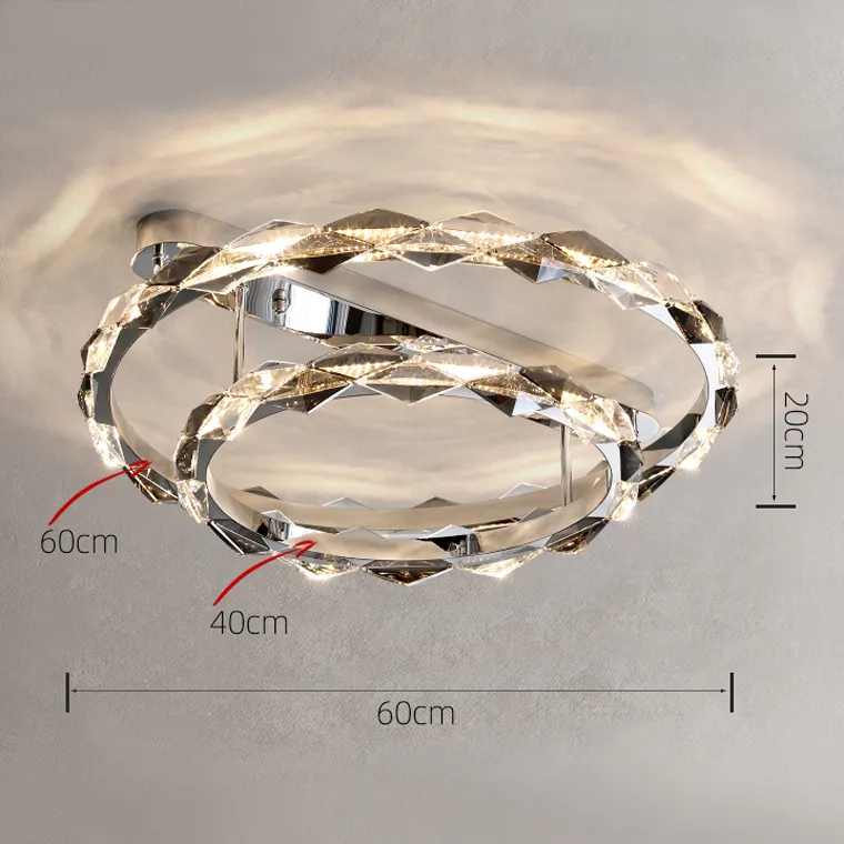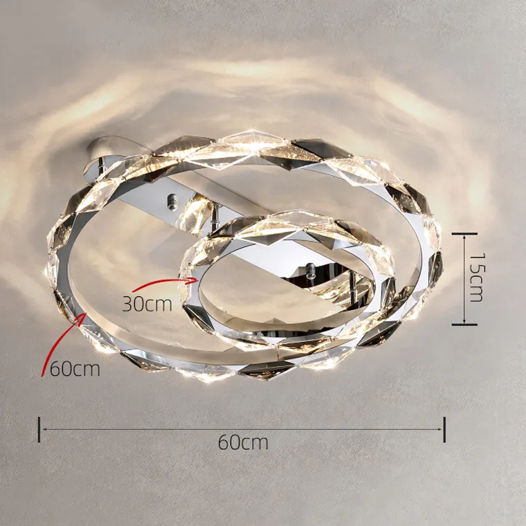 Серия потолочных светодиодных люстр с хрустальными рассеивателями в виде накладных пластин ромбической формы