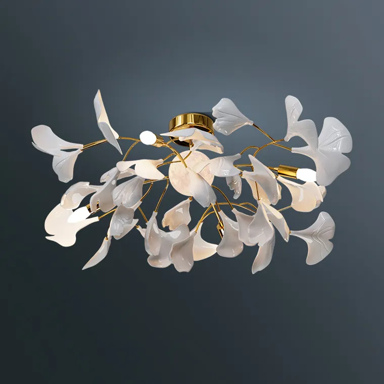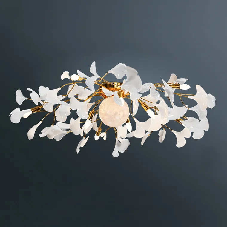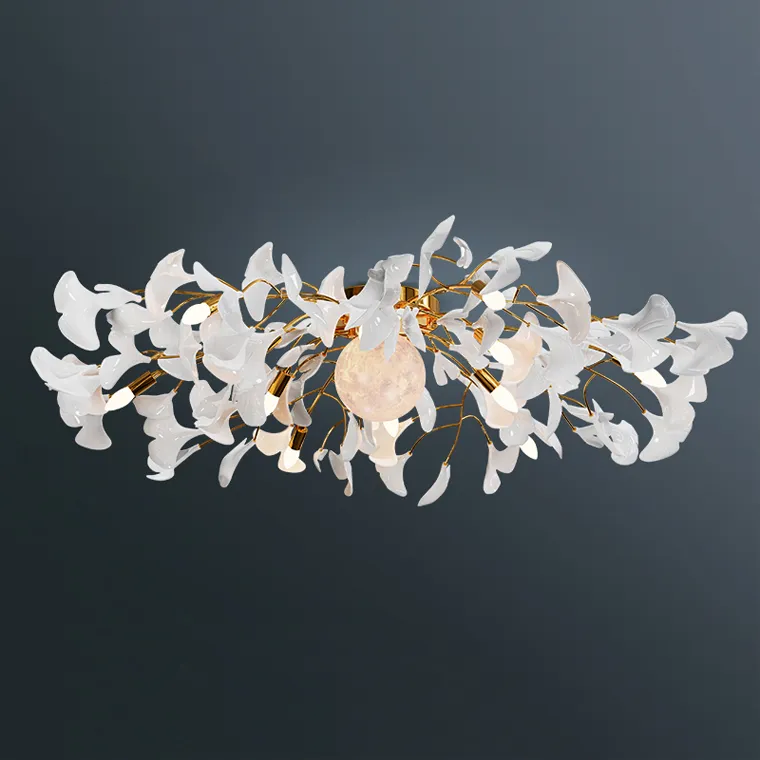 Серия дизайнерских потолочных люстр на ветвистом каркасе с белыми рассеивателями и шаровидным плафоном имитирующим луну