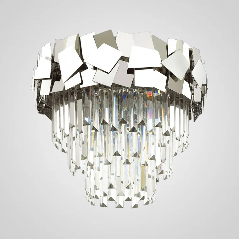 Люстра KASAEN C в стиле Постмодерн с кольцевым каркасом зеркального полированного хрома и абажуром из комбинации хрустальных подвесов с отточенными гранями