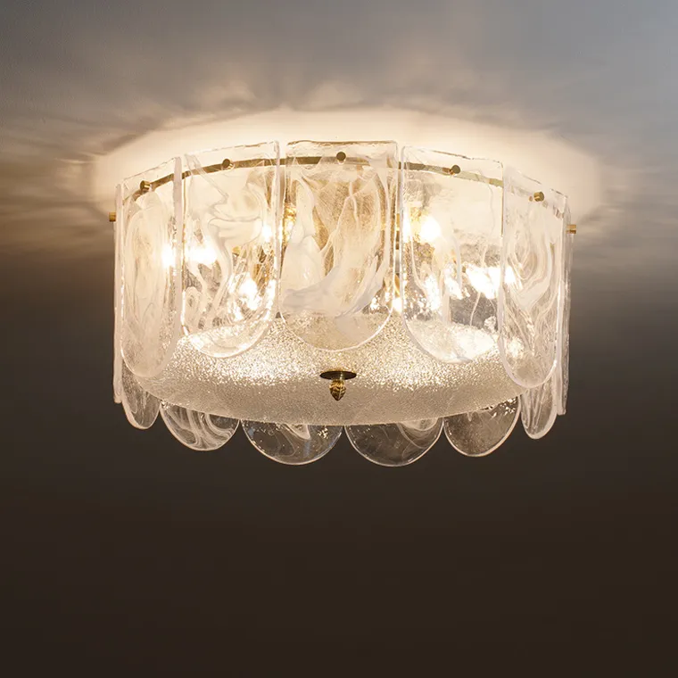 Серия потолочных люстр с абажурами из округлых стеклянных пластин с эффектом «Белый дым»