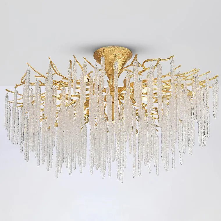 Ветвистый и причудливый каркас, выполнен из благородной латуни, имитируя таинственные изгибы ствола и ветвей дерева. Каждая стеклянная подвеска в виде сосульки сверкает, ловя свет и отражая его тысячи искорок, словно маленькие звезды, танцующие в вашем доме. Это эмоциональное путешествие в мир роскоши и комфорта, в который хочется возвращаться снова и снова. Она станет центром внимания в вашей гостиной или спальне, добавив утонченности и элегантности любому интерьеру. Каждый вечер, вы будете чувствовать теплоту и уют, которые создает эта люстра, очаровывая вас и ваших гостей снова и снова.