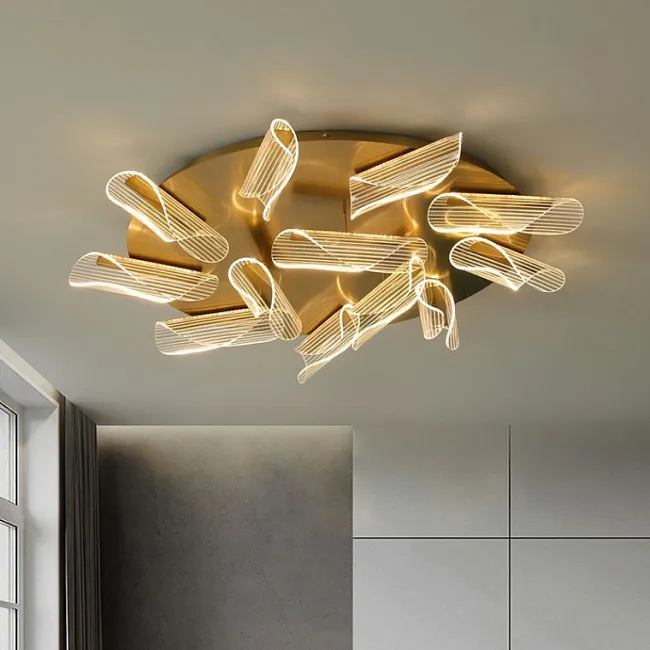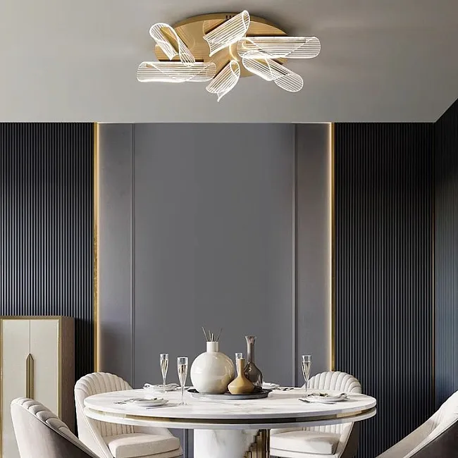 Серия потолочных люстр с каскадным абажуром из белых стеклянных перьев