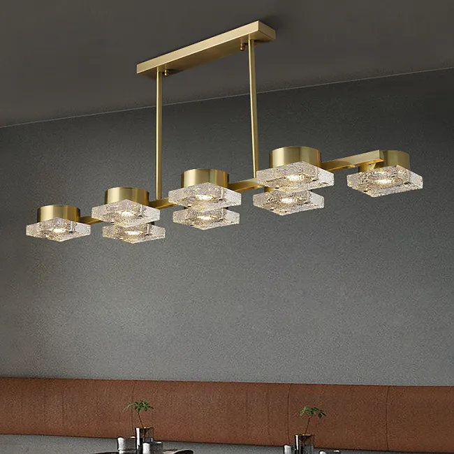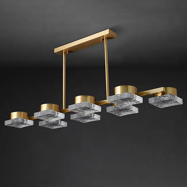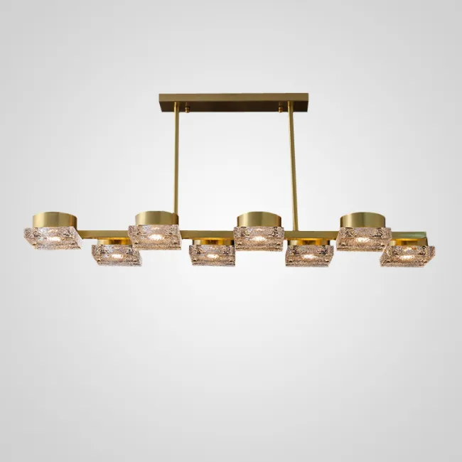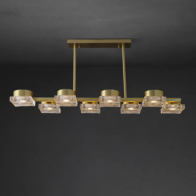 Люстра для низких потолков в минималистичном стиле с круглыми крепежными элементами и квадратными рассеивателями с имитацией водной ряби на стекле