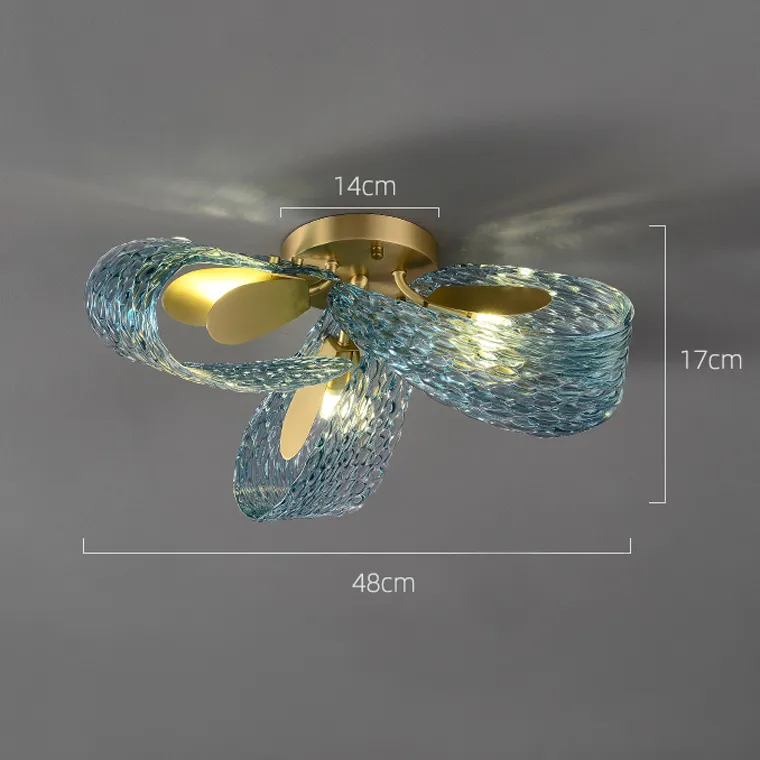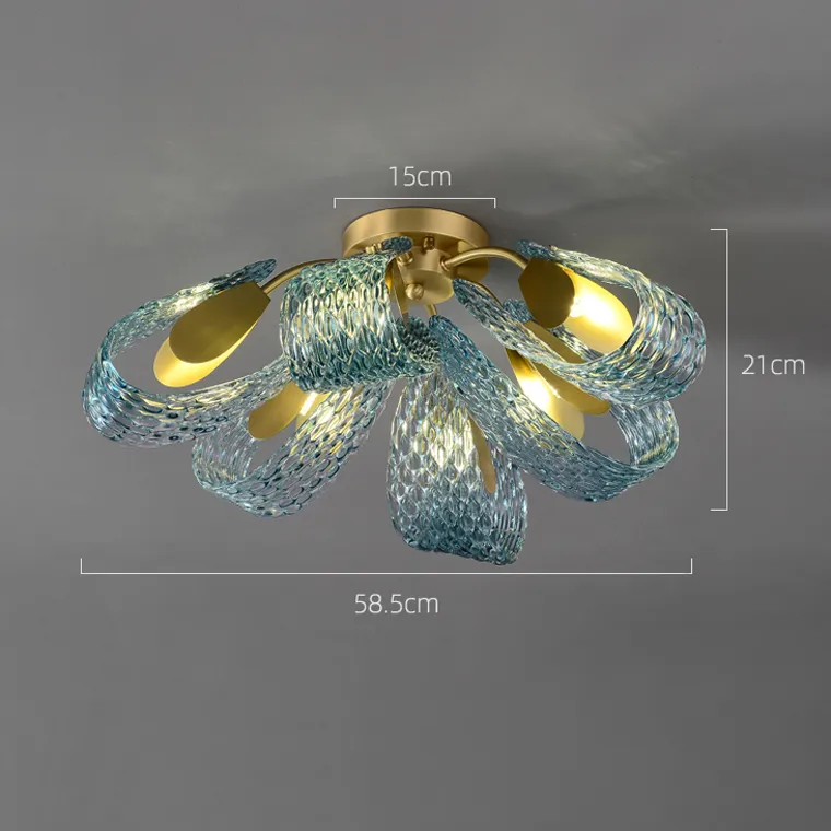 Серия потолочных люстр с рассеивателями в виде лепестков из голубого стекла с панцирной поверхностью