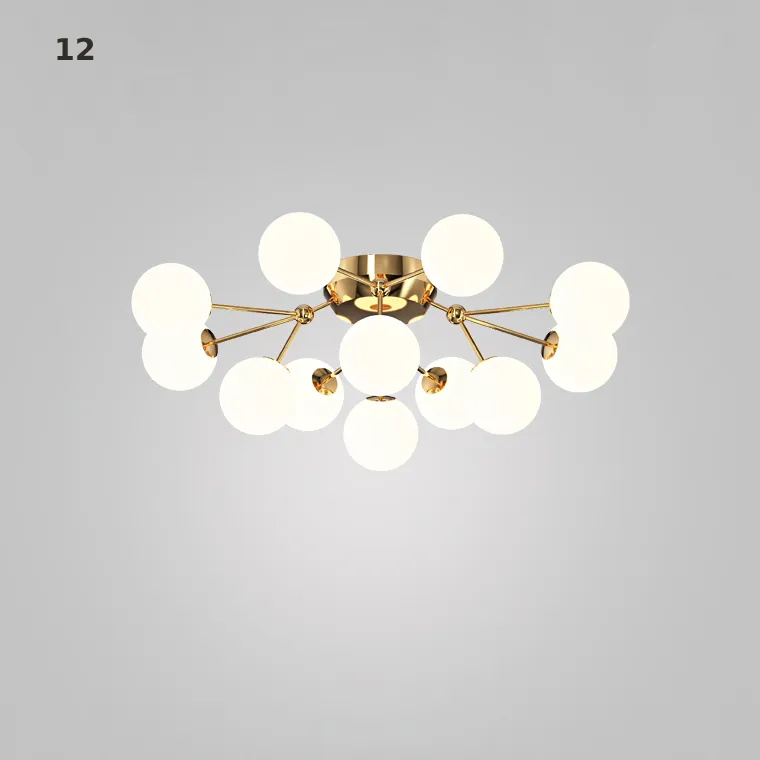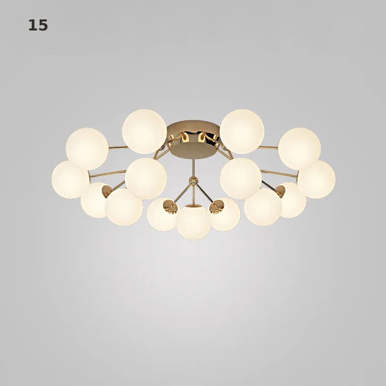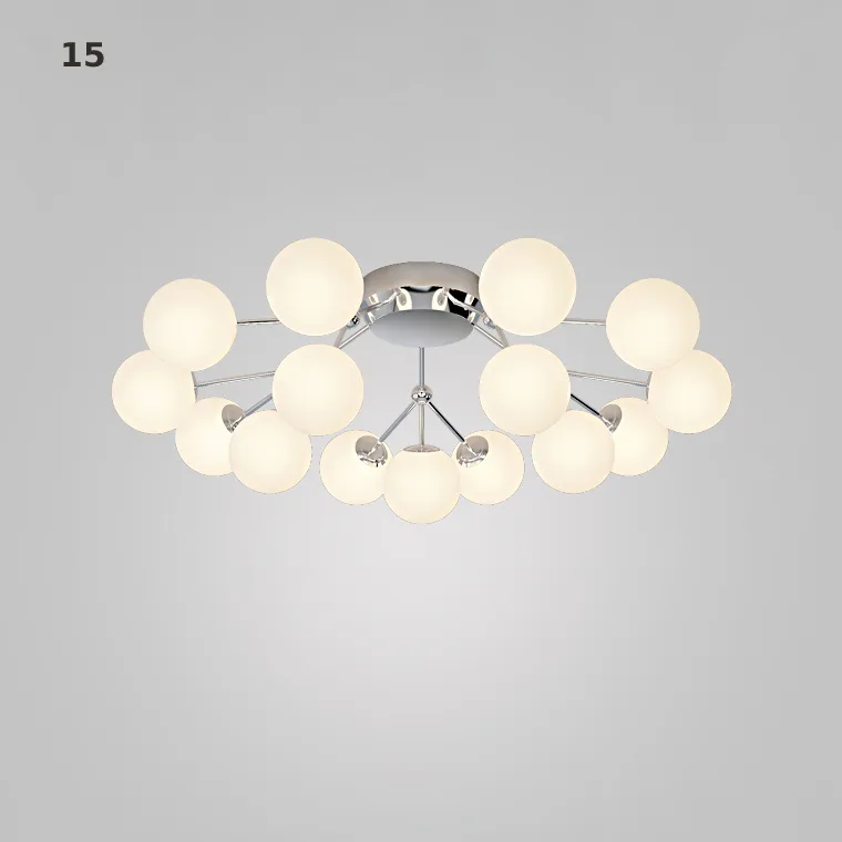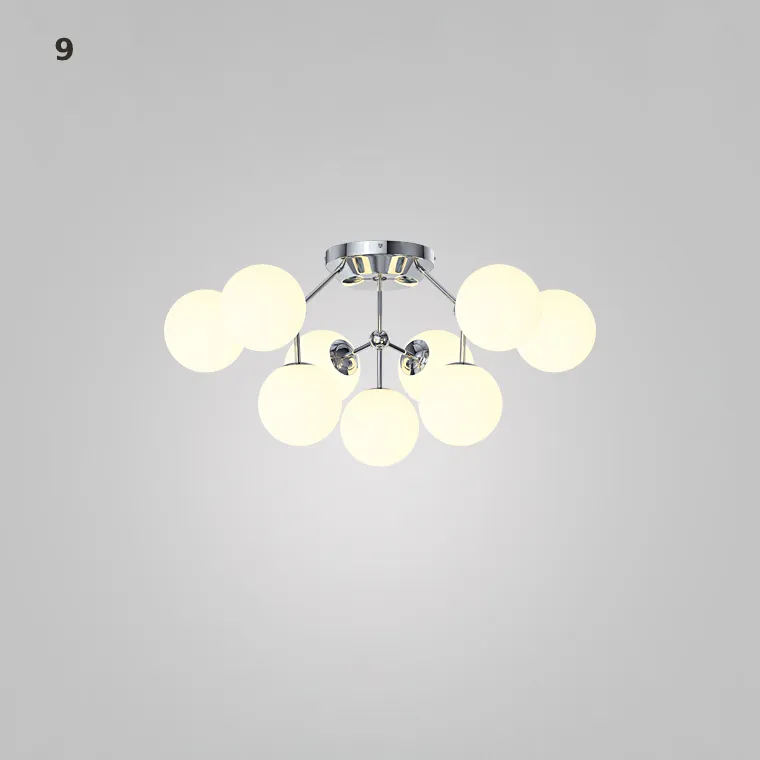 Серия потолочных светодиодных люстр со стеклянными шарообразными плафонами на лучевом каркасе с клипами